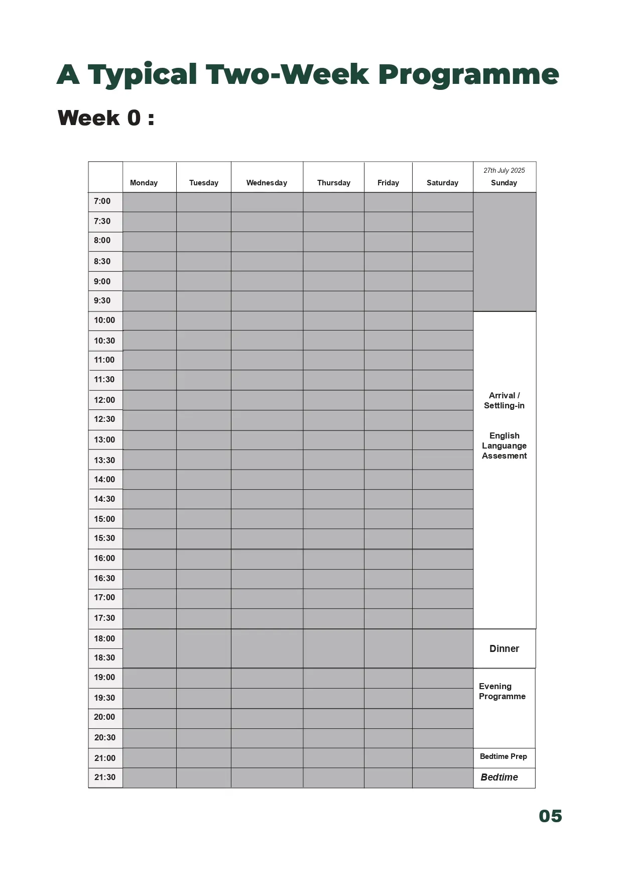 サマーキャンプの出発日は2025年8月9日で、送迎サービスは午前8時から午後1時まで運行されます。出発の準備を事前に整えておいてください。✈️空港送迎については、フライトのチェックイン時間の2時間前にのみ送迎が行われます。チェックインの3時間前に空港に到着する必要がある場合は、各自で手配してください。空港送迎が必要ない学生の保護者様は、午後1時前に学校からお子様をお迎えください。