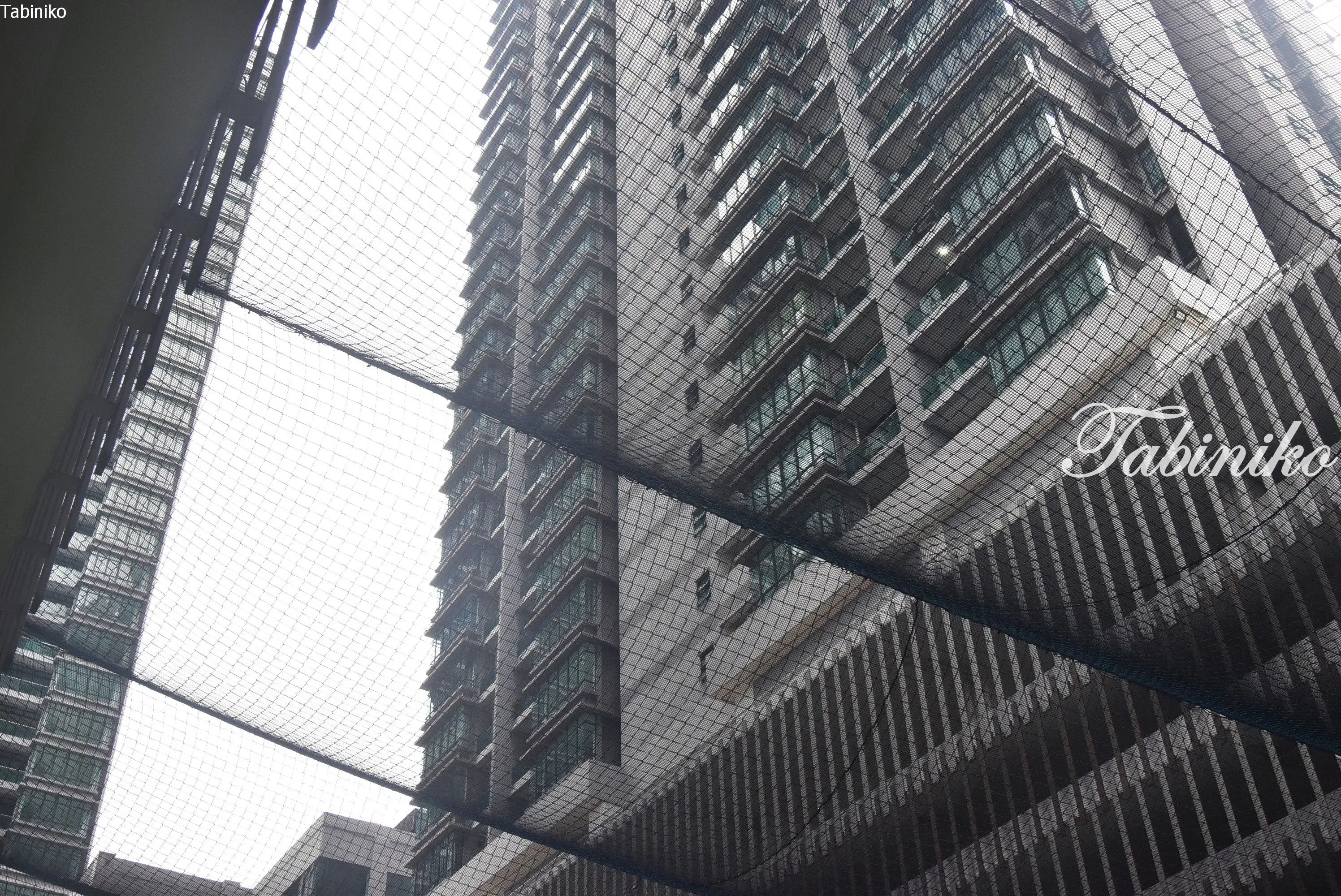 グラウンドの上はこんな感じで、コンドの内側の下に学校のグラウンドがあります。落下防止用のネットも張ってあります。