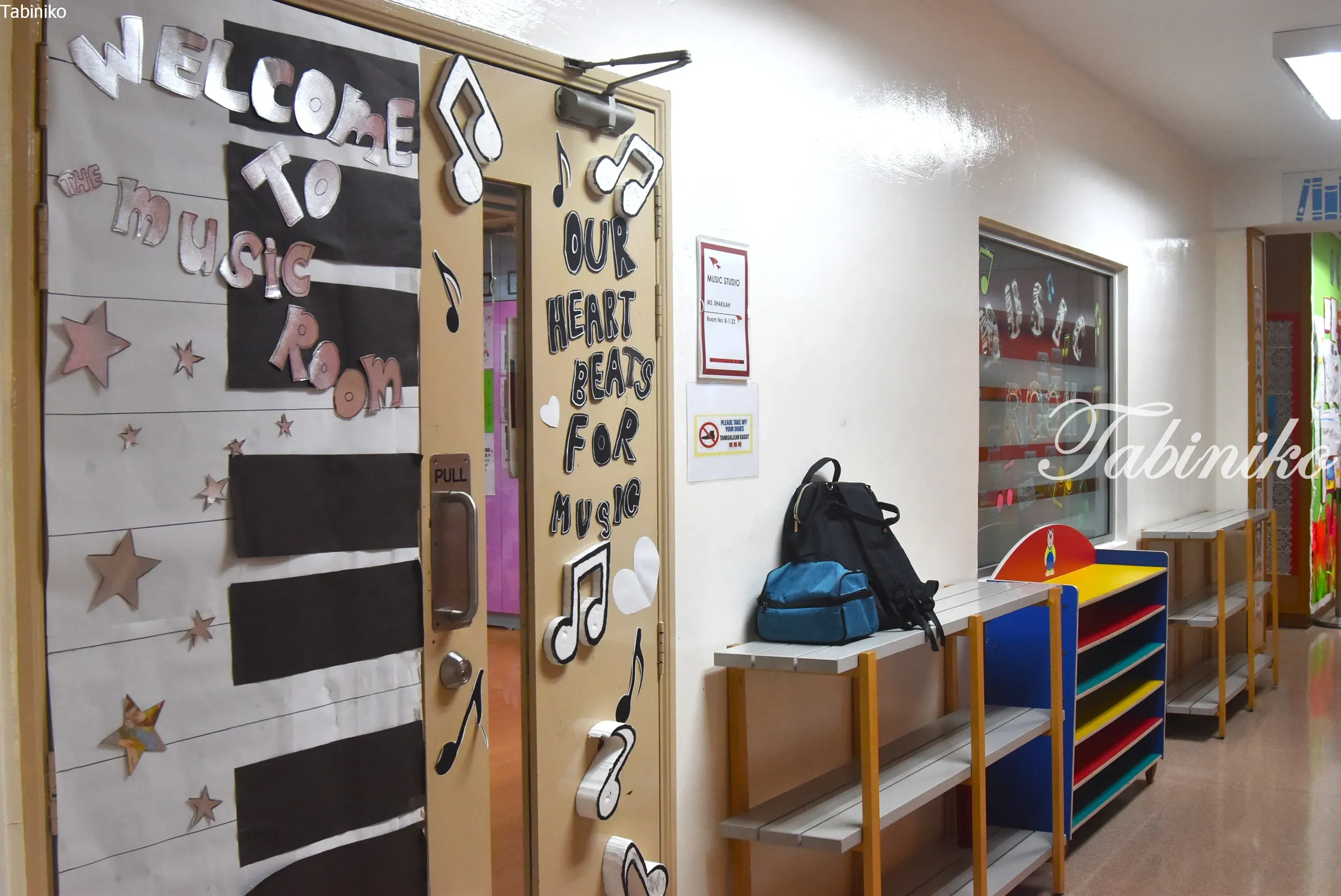 上の3枚の写真は違う日に撮った同じ場所の写真です。何度か見学に行きましたが、掲示板は定期的に張り替えています。掲示板の張り替えも結構大変だと思うのですが、生徒達の勉強に合わせて環境も変えることは大切だと思います。