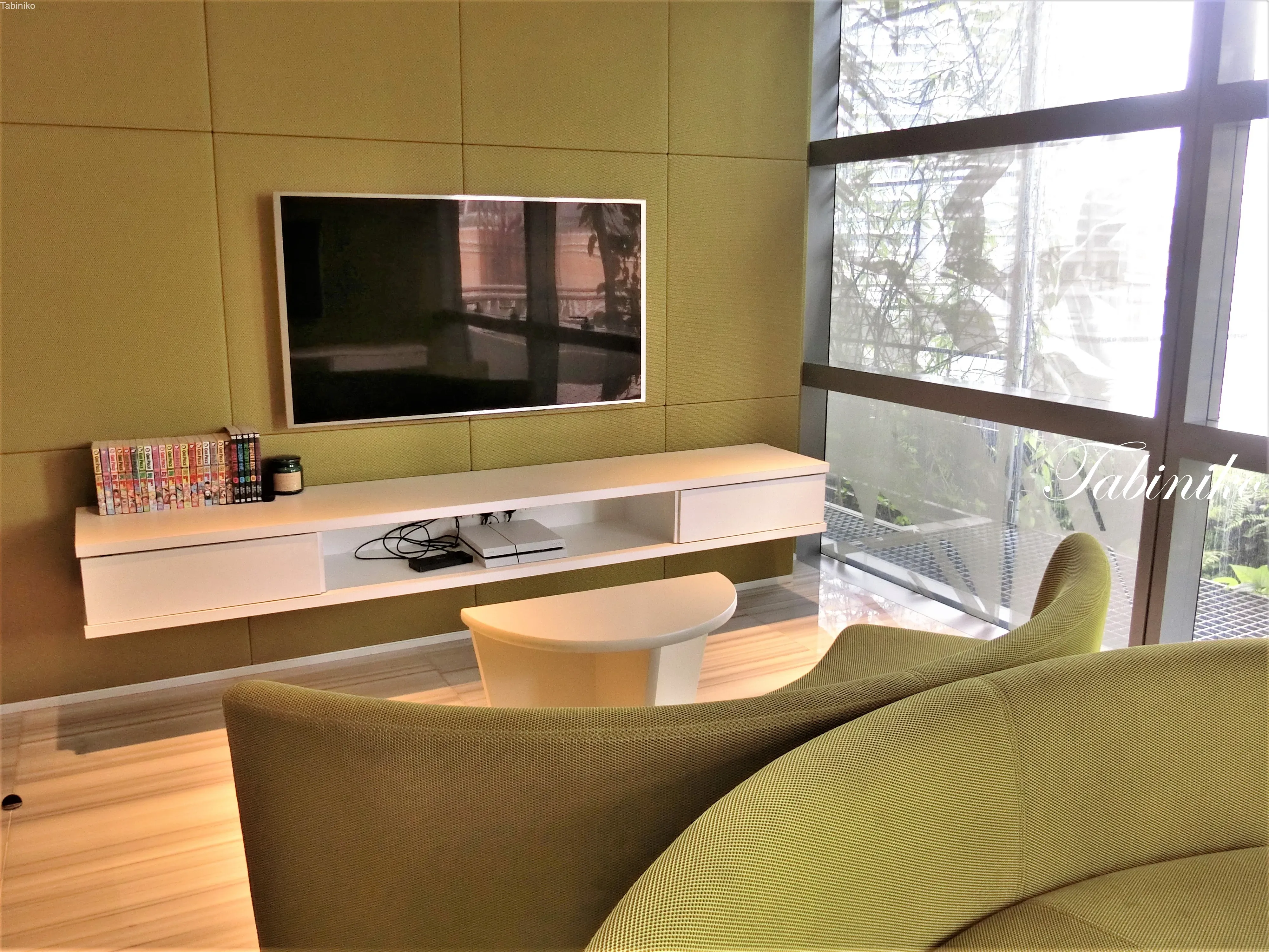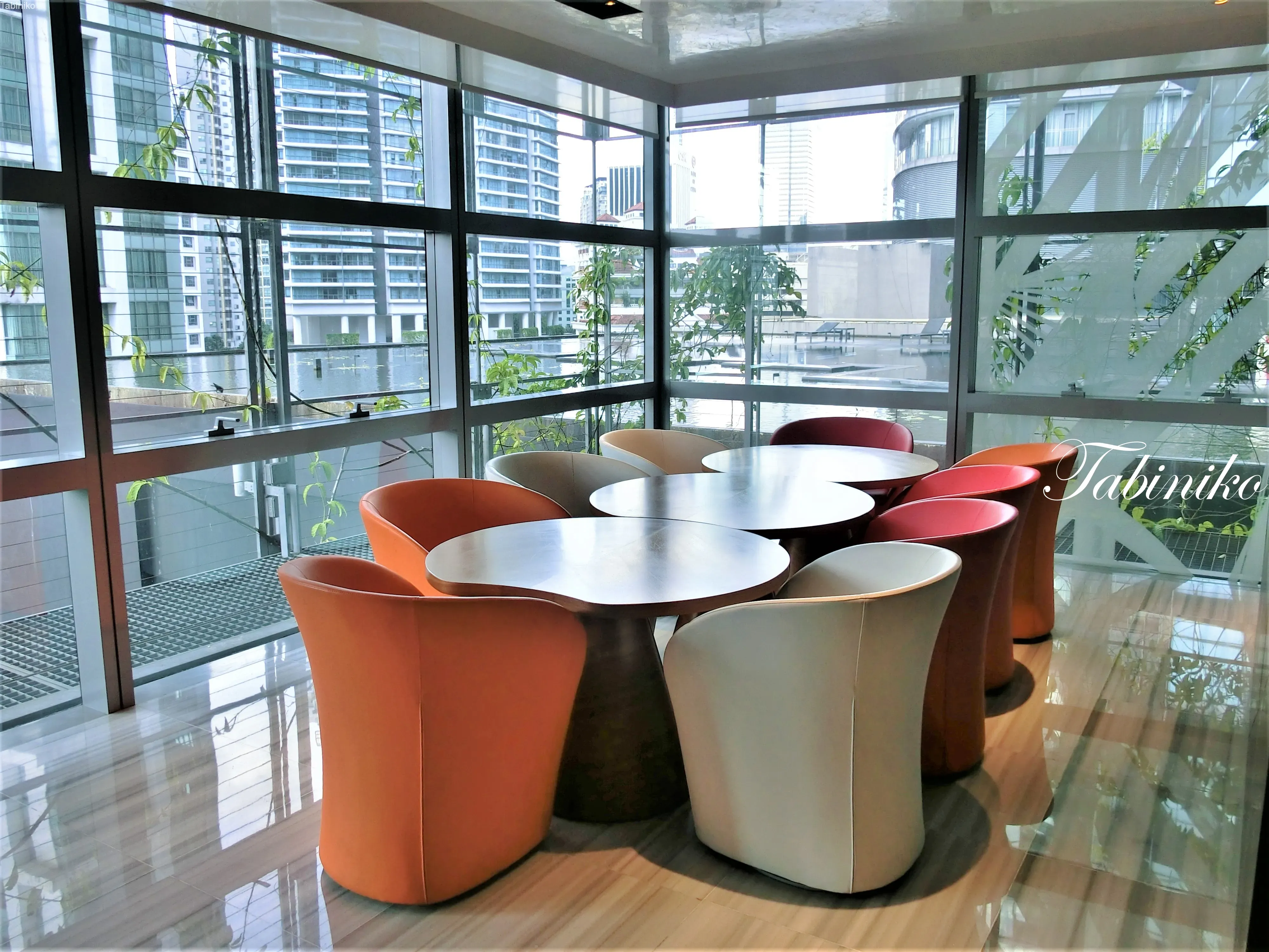 34階は、イタリアの会社Saporiti Italiaが「自然」をテーマにデザインしています。壁や天井、カーペットも植物をモチーフにしていて、より「自然」な空間を作り上げています。