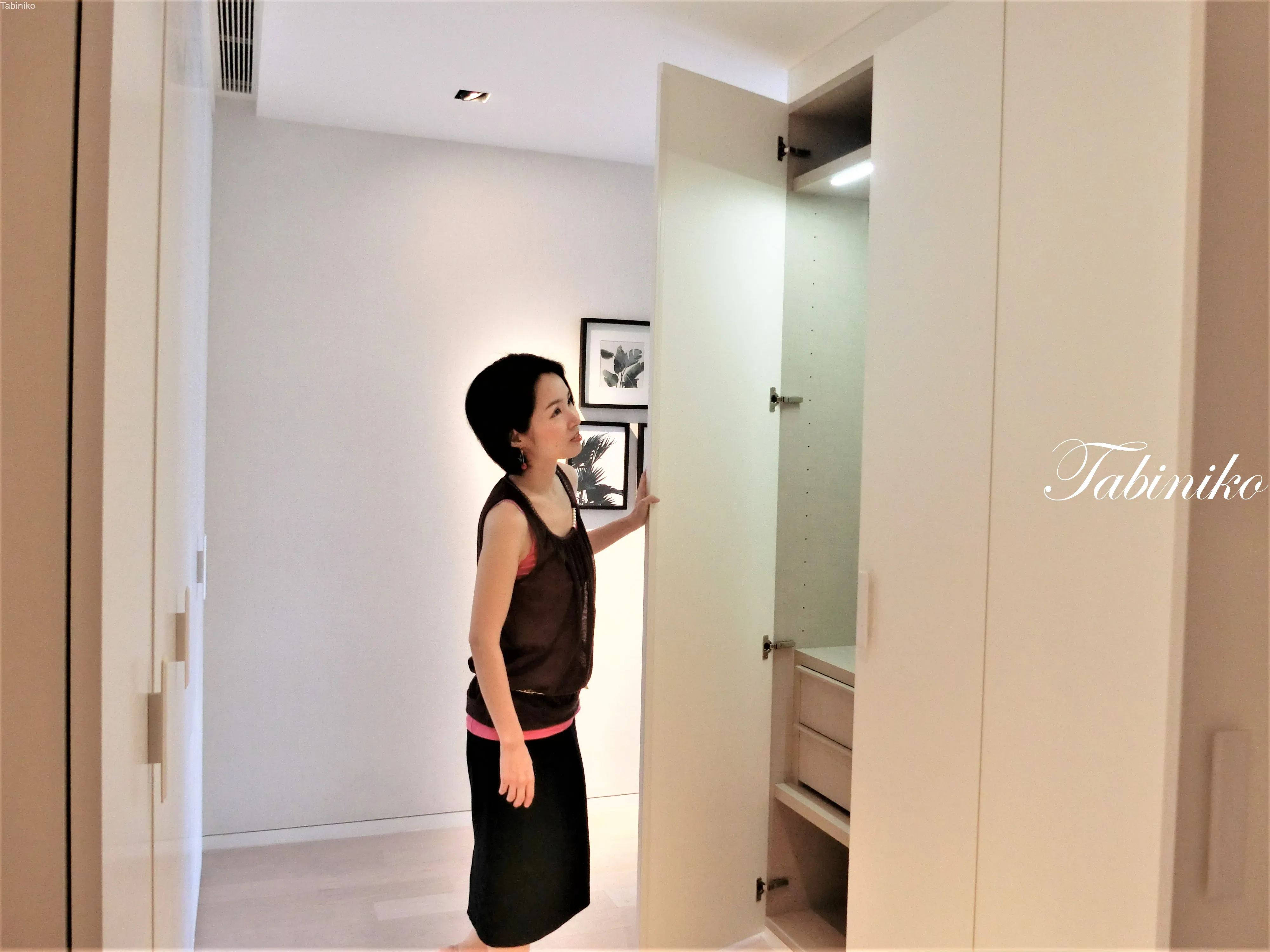 上に上がってマスターベットルームに入ると、ドレッサールームがあります。リビングから見上げた景色。なかなか見たことのない光景ですね!