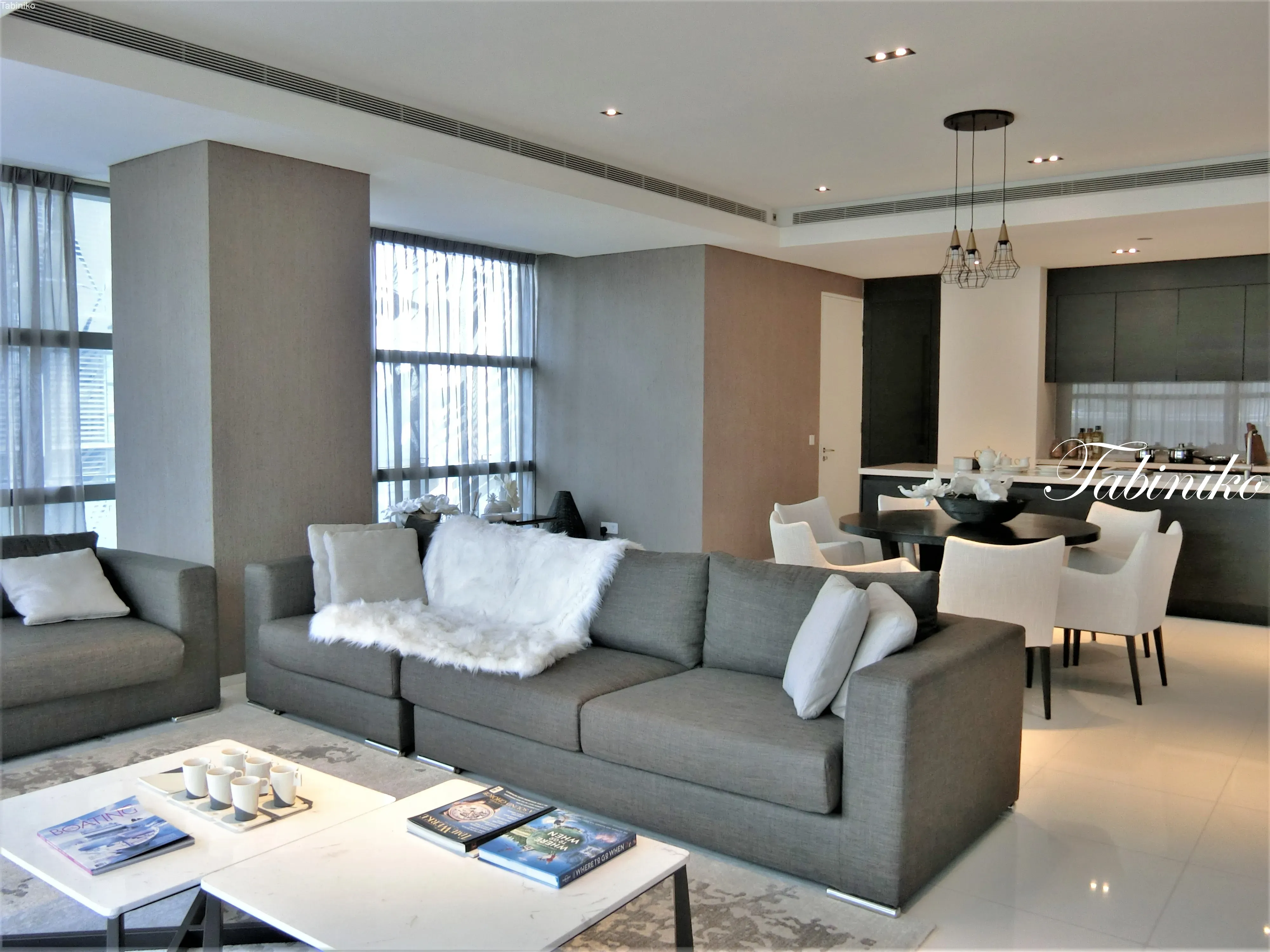 ダイニングテーブルと更にリビングルームがあります。家でのパーティーもいいですが、この34階でのダイニングパーティーラウンジでパーティーもいいですね!
