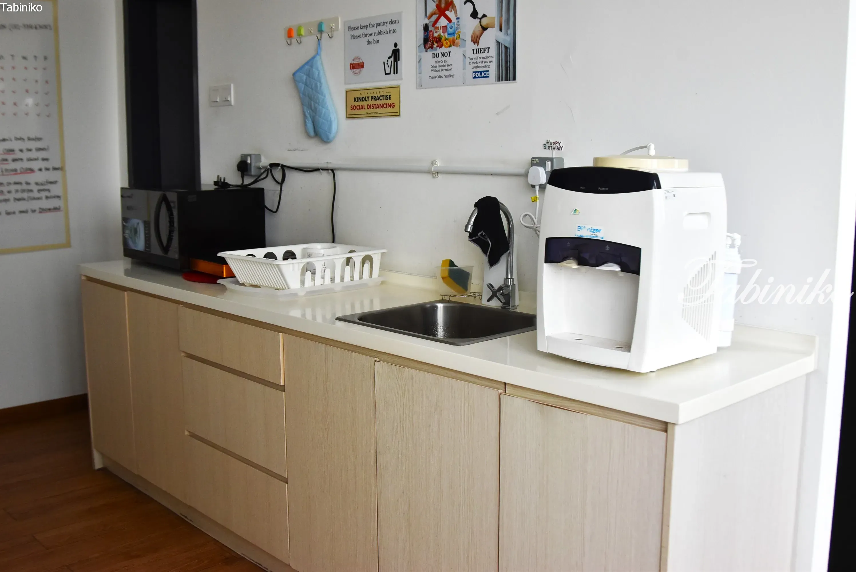各フロアに簡単なキッチンスペース、電子レンジ、ウォーターサーバー、冷蔵庫があります。
