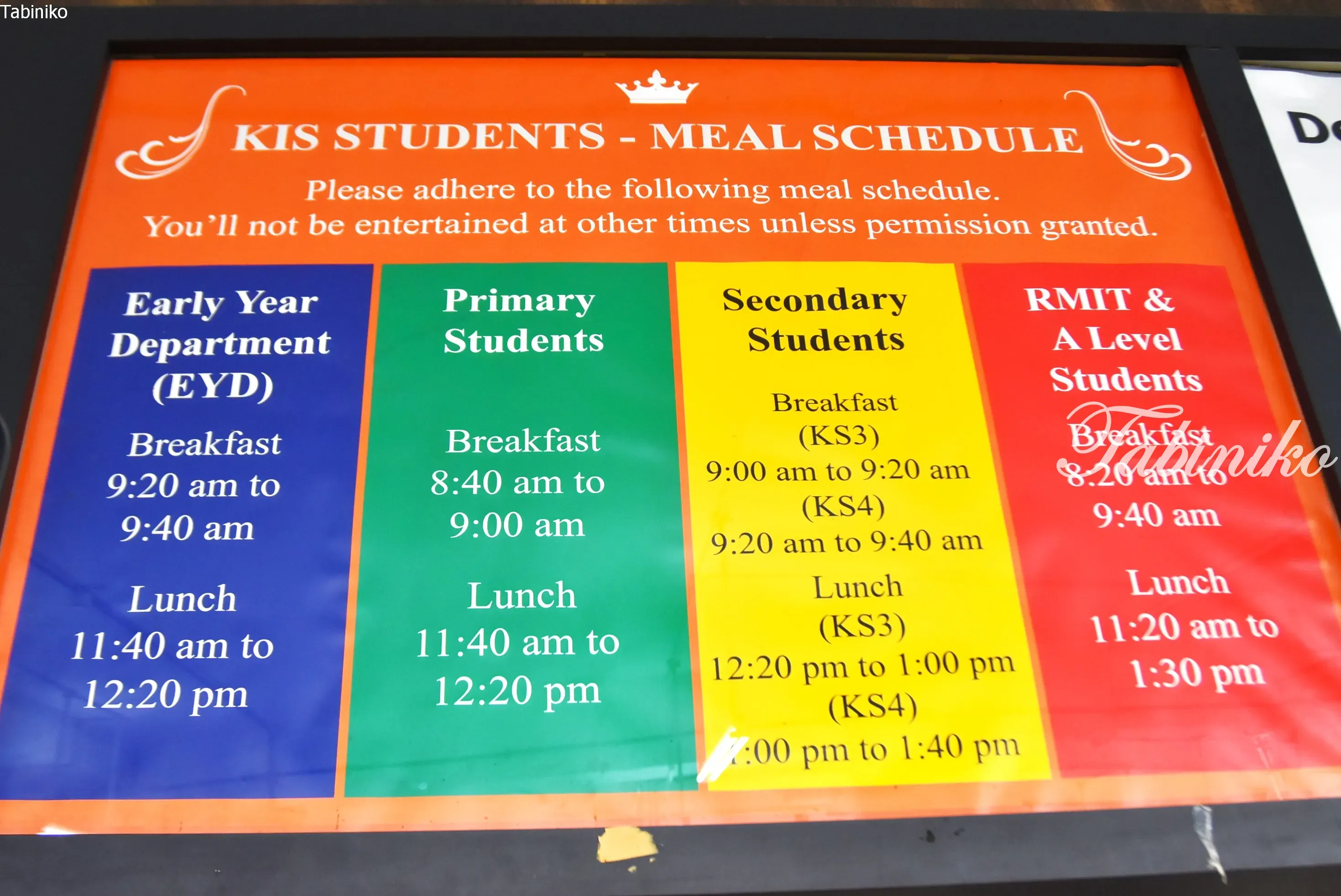 マンモス校なので、朝ごはん、ランチの時間を幼稚園、小学校、中学校、高校ごとにズラしています。