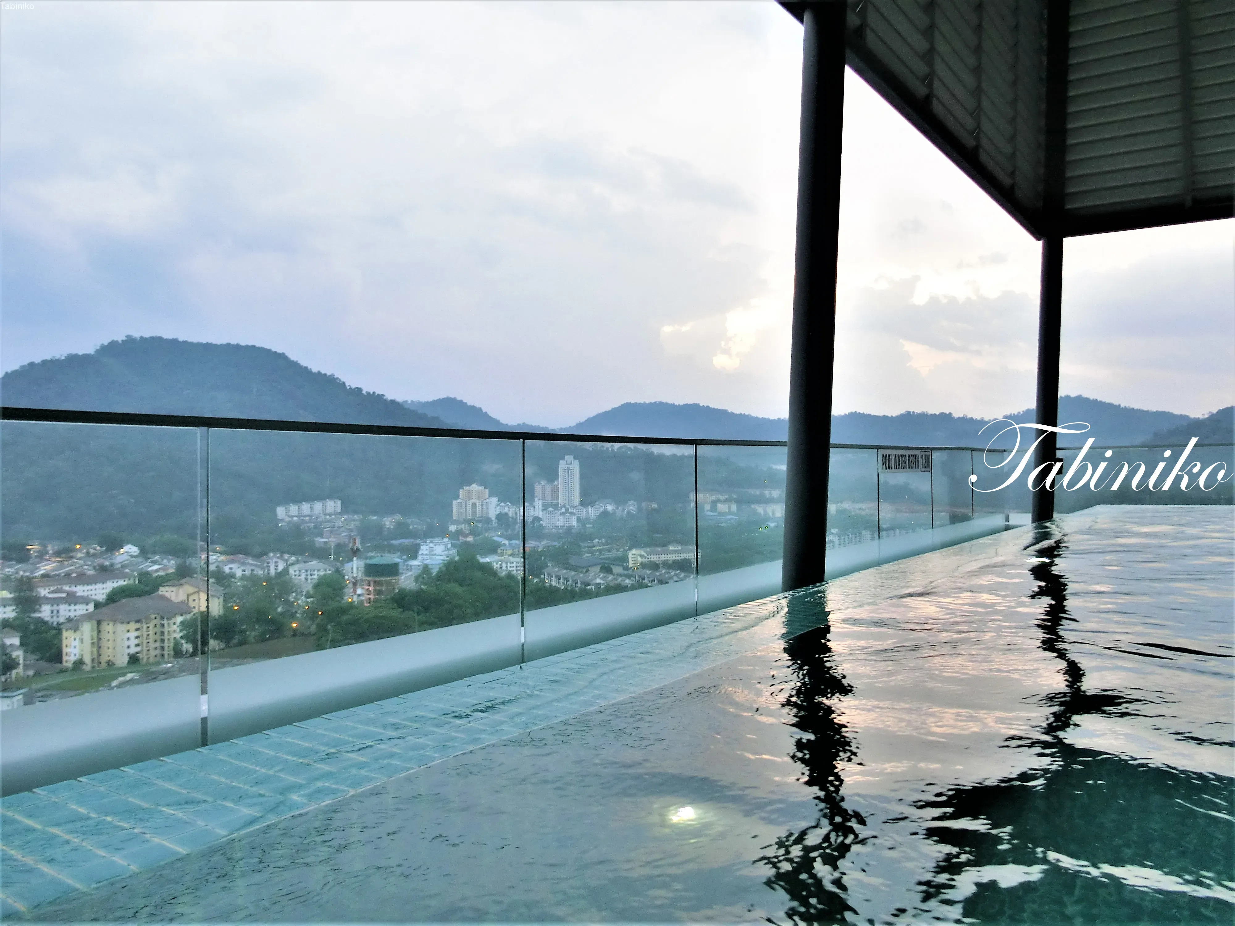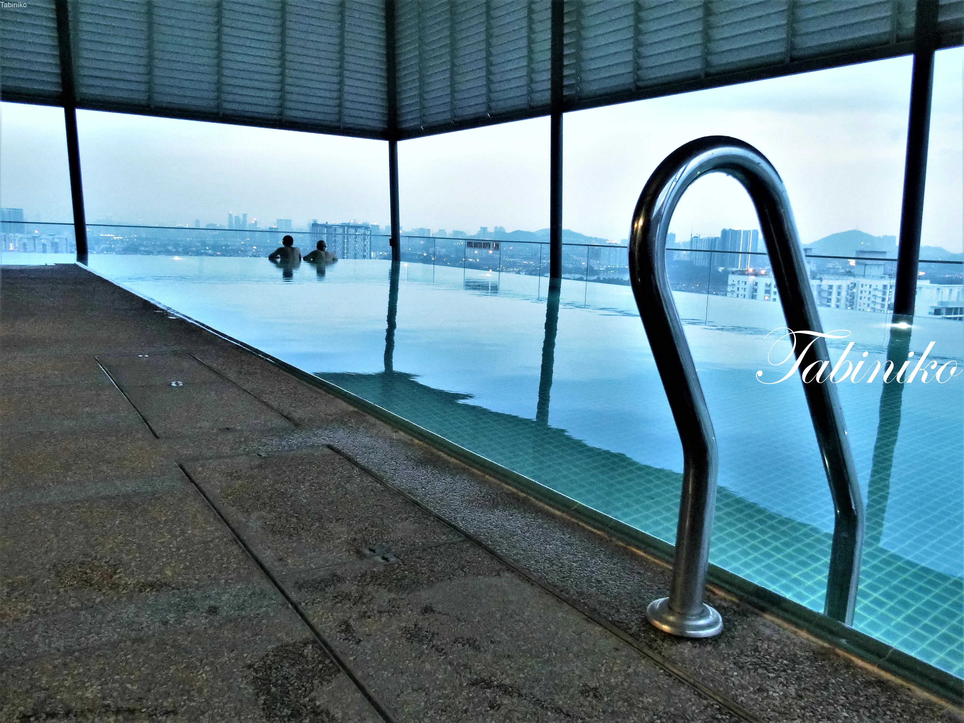 遠くの山を眺めながら仕事のあとに泳いでリフレッシュ!!空気が霞んでいなければツインタワーを見ることもできます。屋根がありますので炎天下の強い日差しや雨は心配無用。