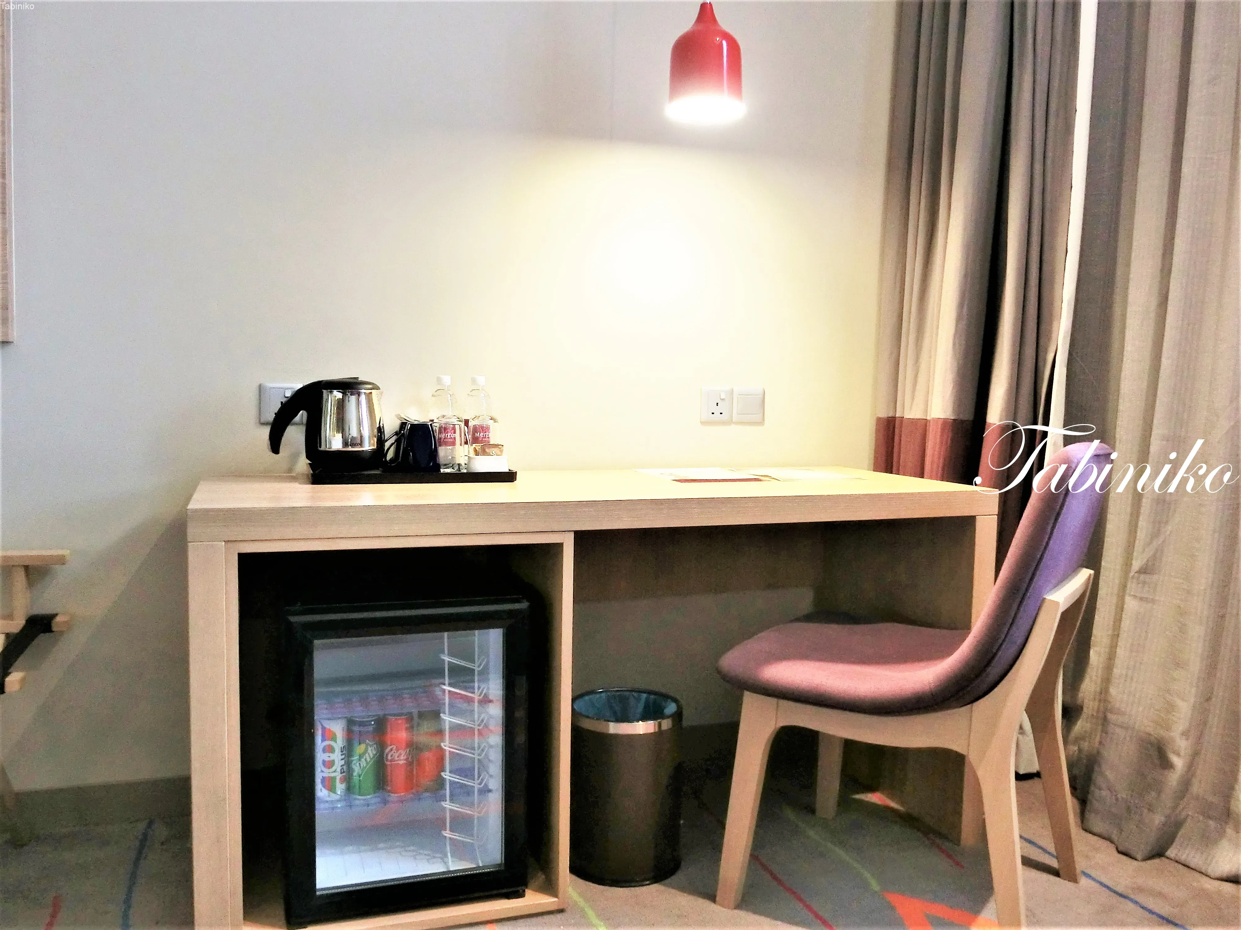 小型冷蔵庫あり。ビールも冷やせます。パソコンも置けるし椅子の座り心地も良いので、仕事がしやすいスペース。