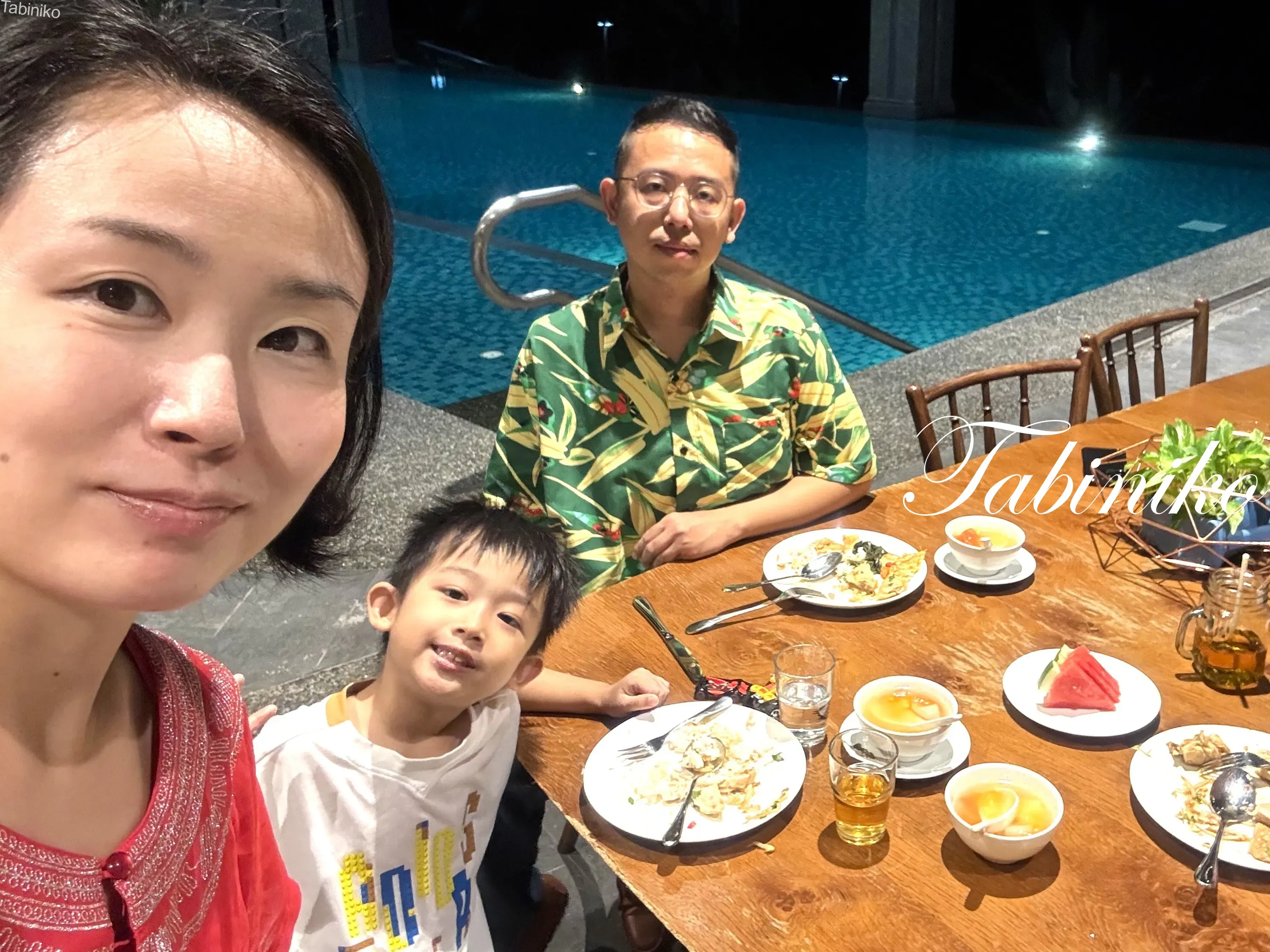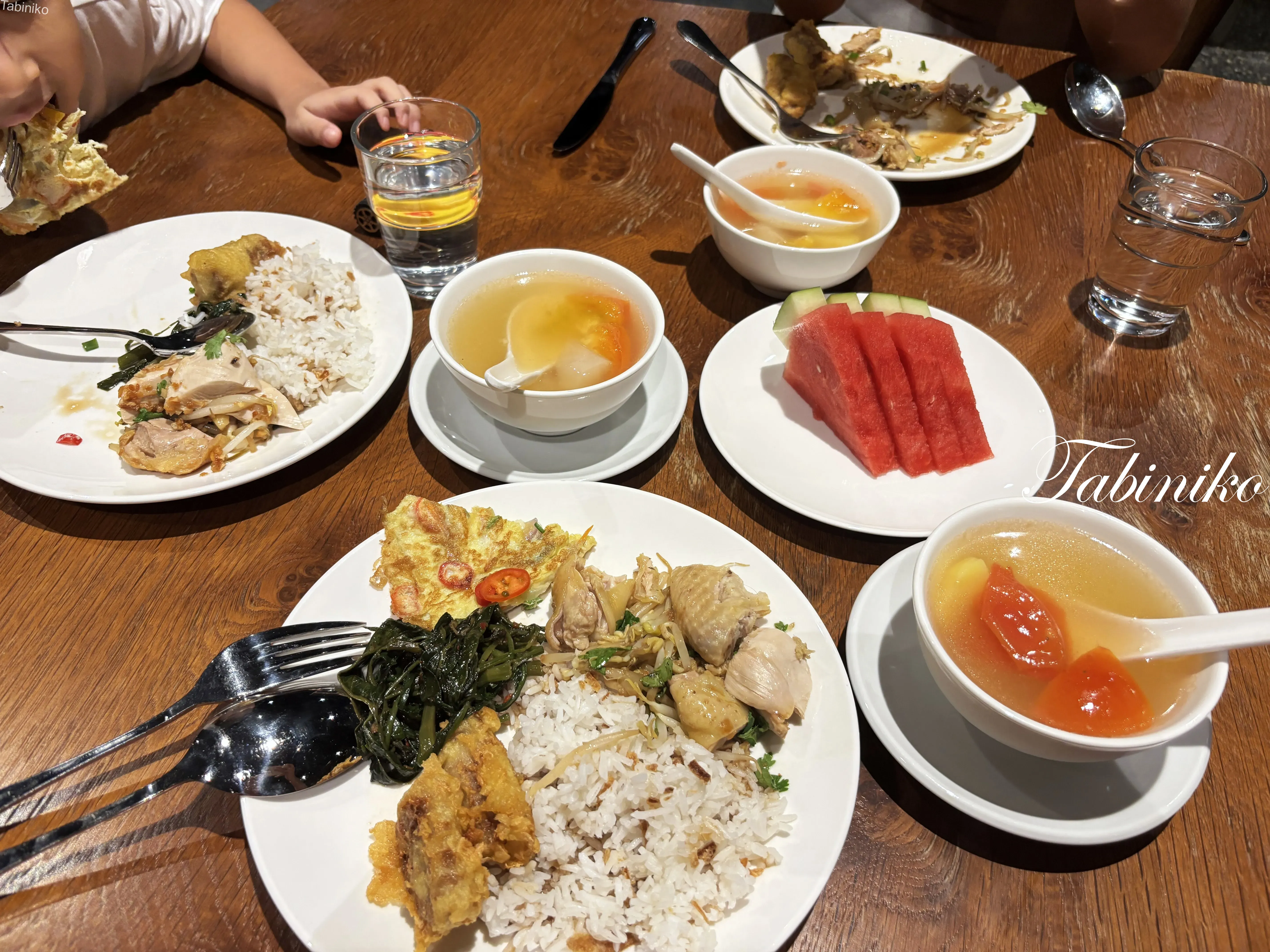 飼っているカンポンチキン(日本でいう地鶏)を使って調理してくれます!!いつも旦那家族も食べているカンポンチキンは、身が締まっていて歯ごたえがあって美味しい(≧▽≦)カンポンチキンをホテルで食べられるって、なんて贅沢。食材もこだわっているホテルはなかなか無いです。