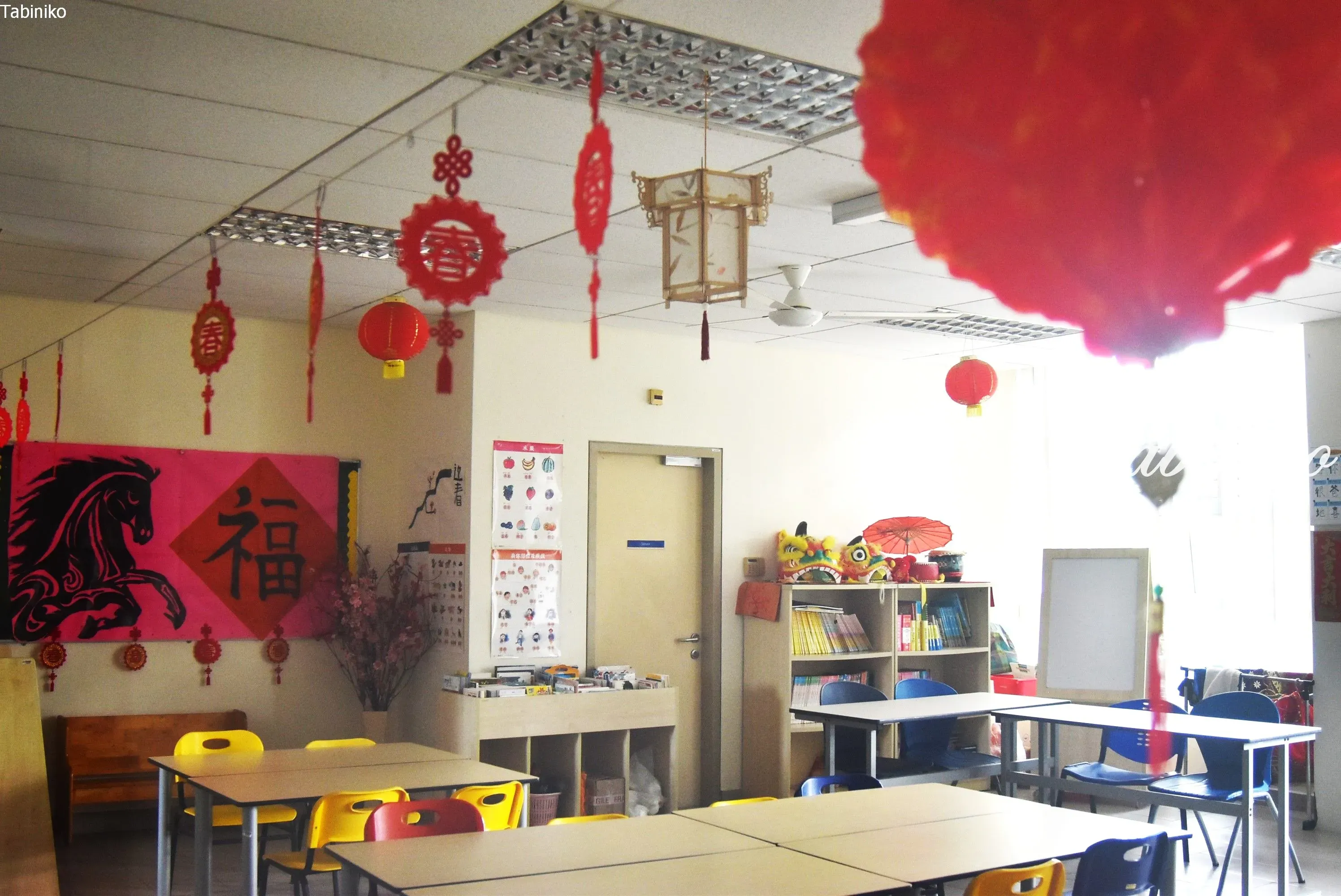 上の階は学年が上の生徒のフロアーで、勉強するスペースや、プロジェクターなどもあります。パズルが出来る机もありました。