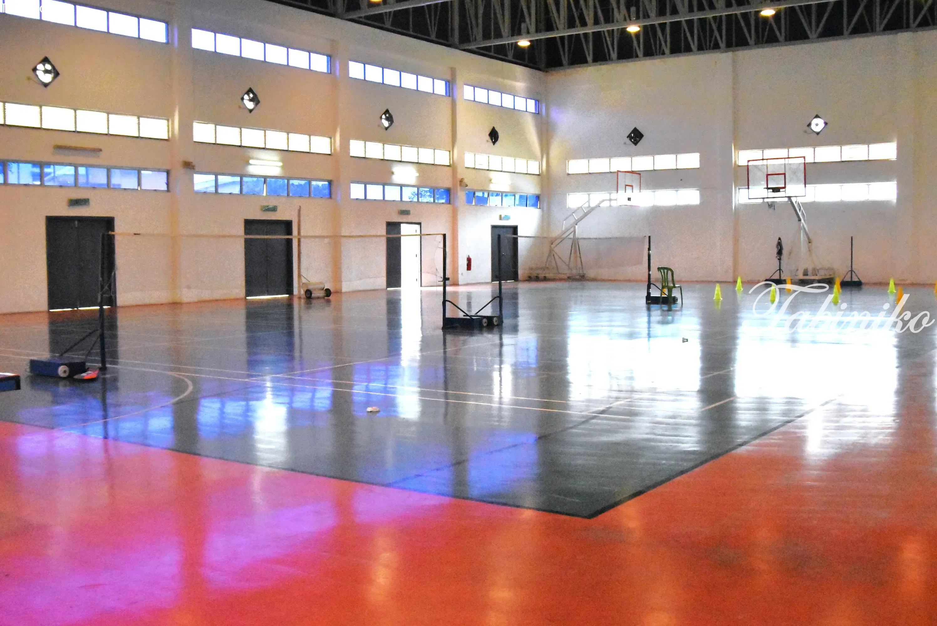 スポーツセンターの下がプールになっていて屋根があるプールです。横はグリーンの芝生で奥は森なので、大自然を眺めながら泳げて気持ちよさそうです!!