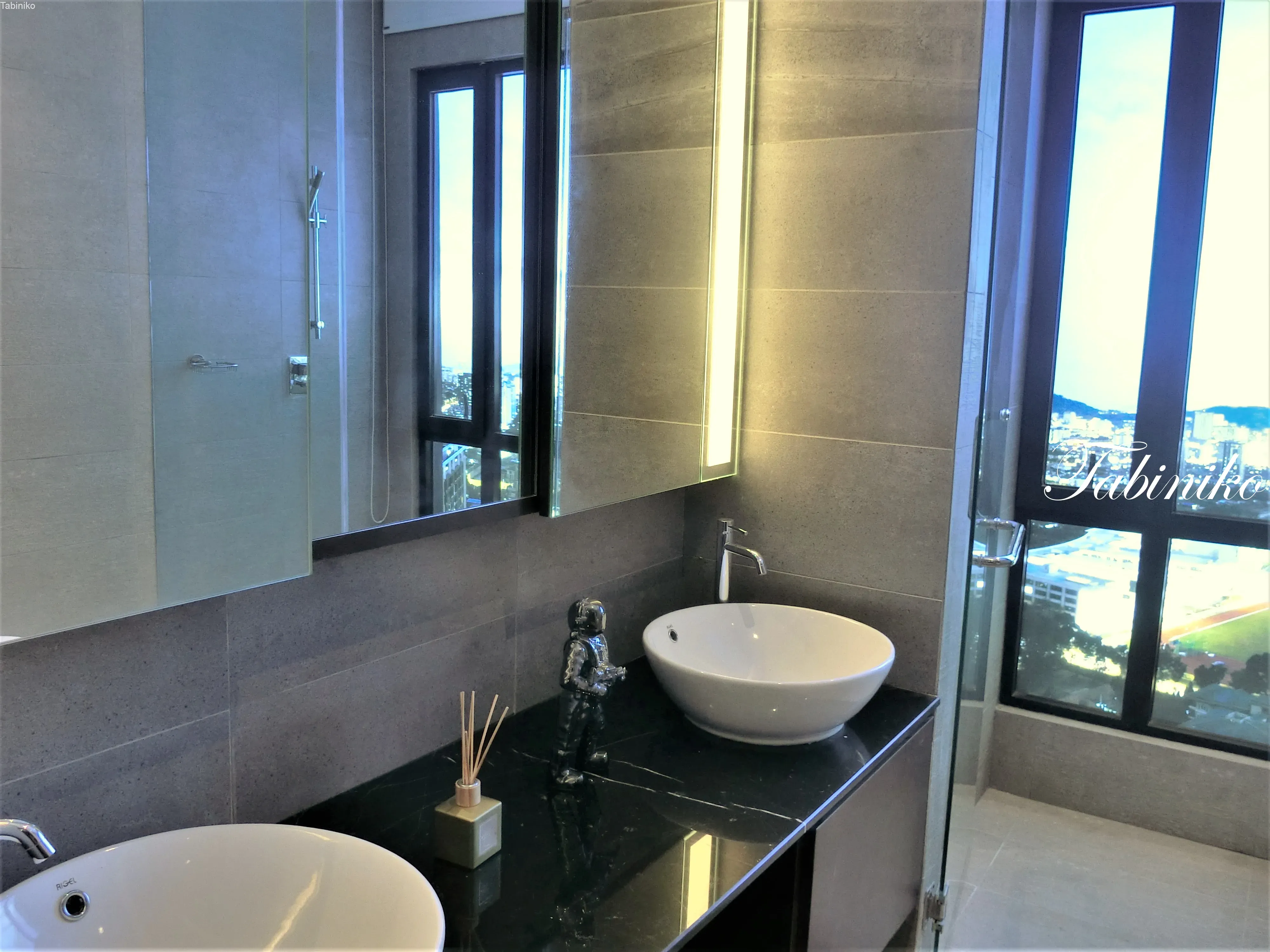 トイレには二つのシンクがあり、便利!部屋のデザインもモダンで、心地良いですよ。