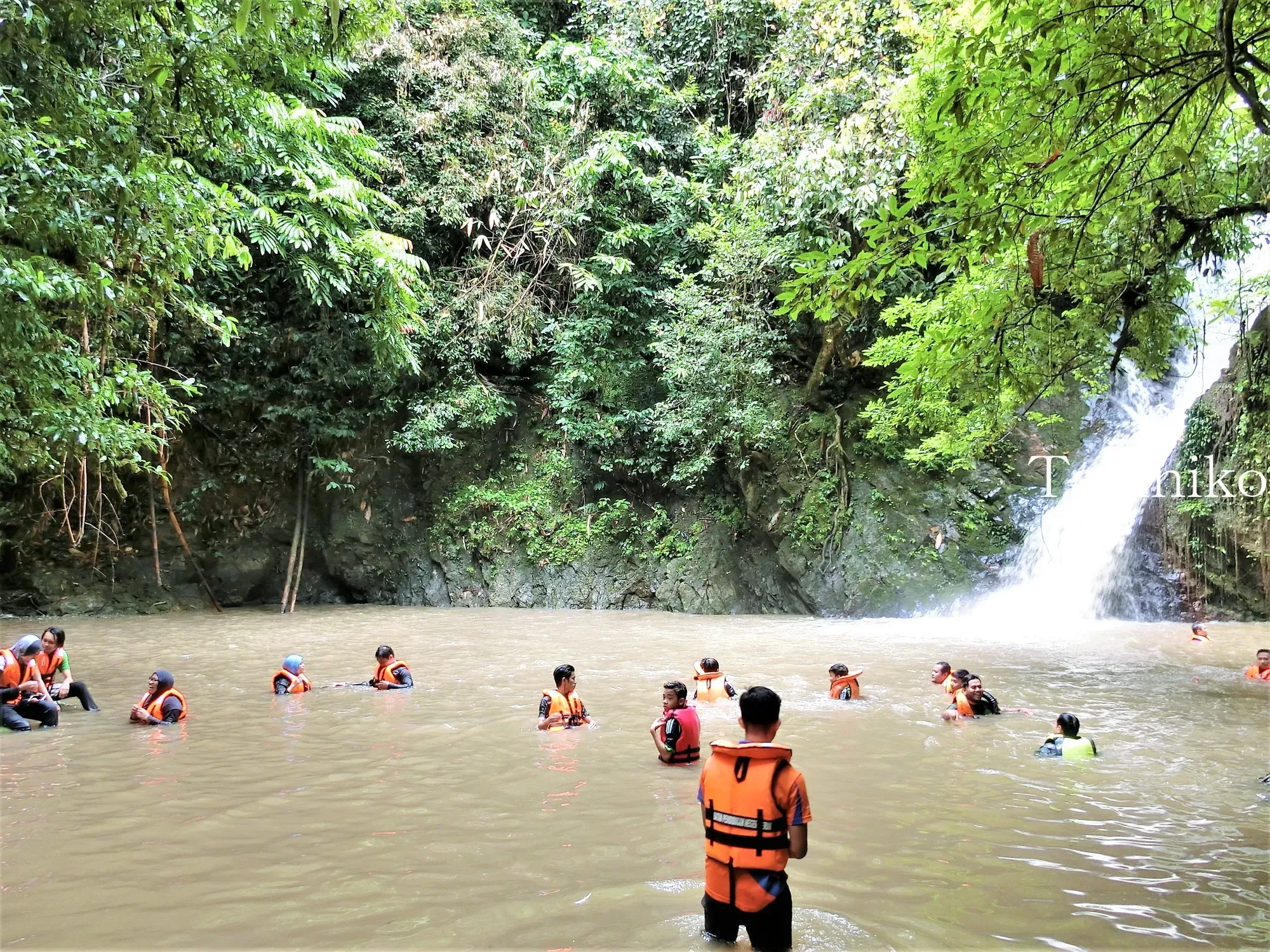 滝の下ではマレー人達が服のまま泳いでいました。トレッキングは結構汚れるので、どうせなら最後は泳いじゃえー。でもカメラと携帯は気を付けてね。全身ずぶ濡れでも船でホテルの船着場まで連れてってくれて、船着場からも言えばバギーも呼んでくれるので、そのまま部屋まで行けるので便利です。ただ帰りは船に乗っている時の風が寒く感じるかもしれないので、バスタオルとか上に羽織るものを船に置いておいて下さい。