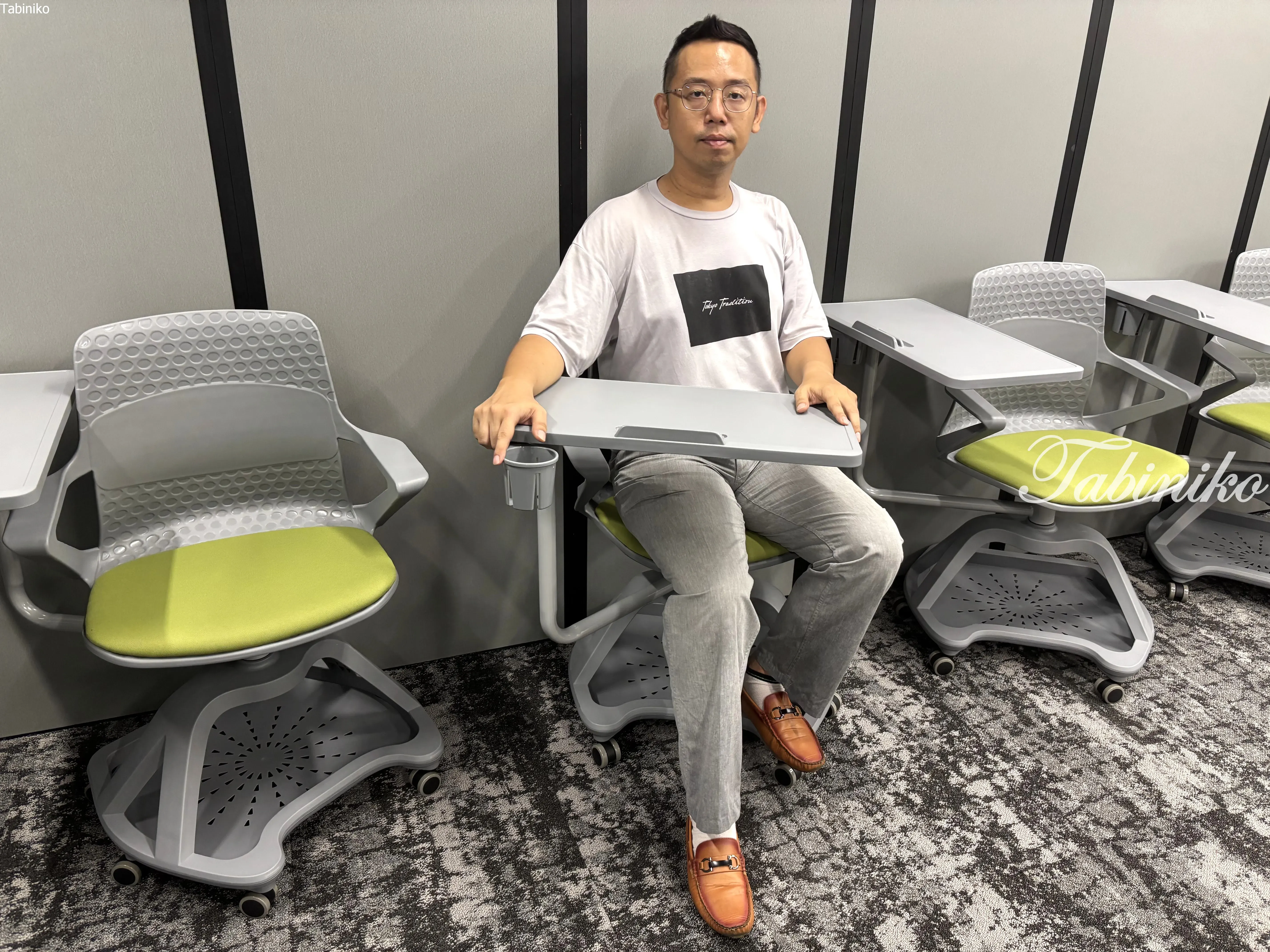 座りやすい特別な椅子で、コーヒーやペットボトルを置けるホルダーも付いてます。