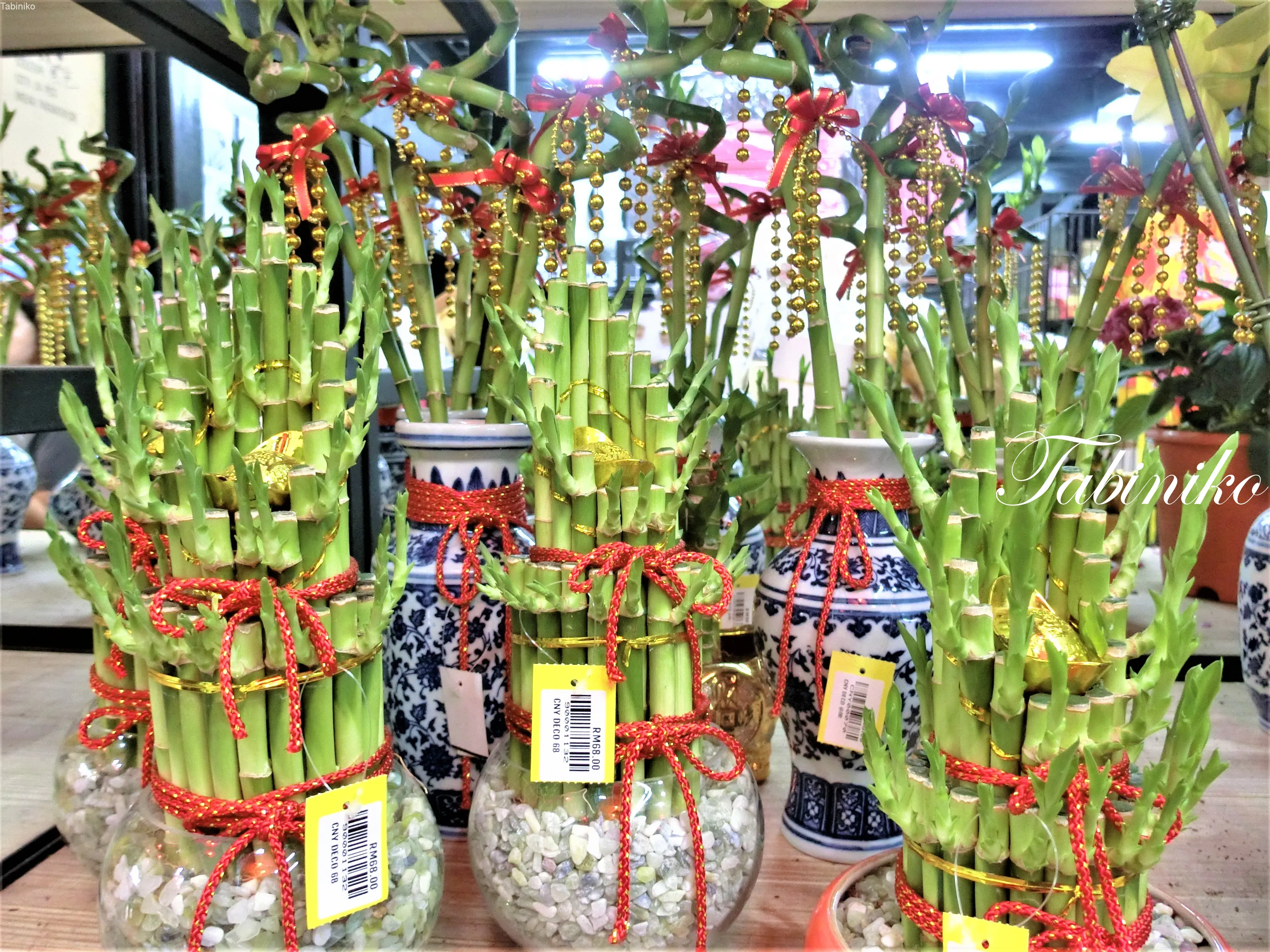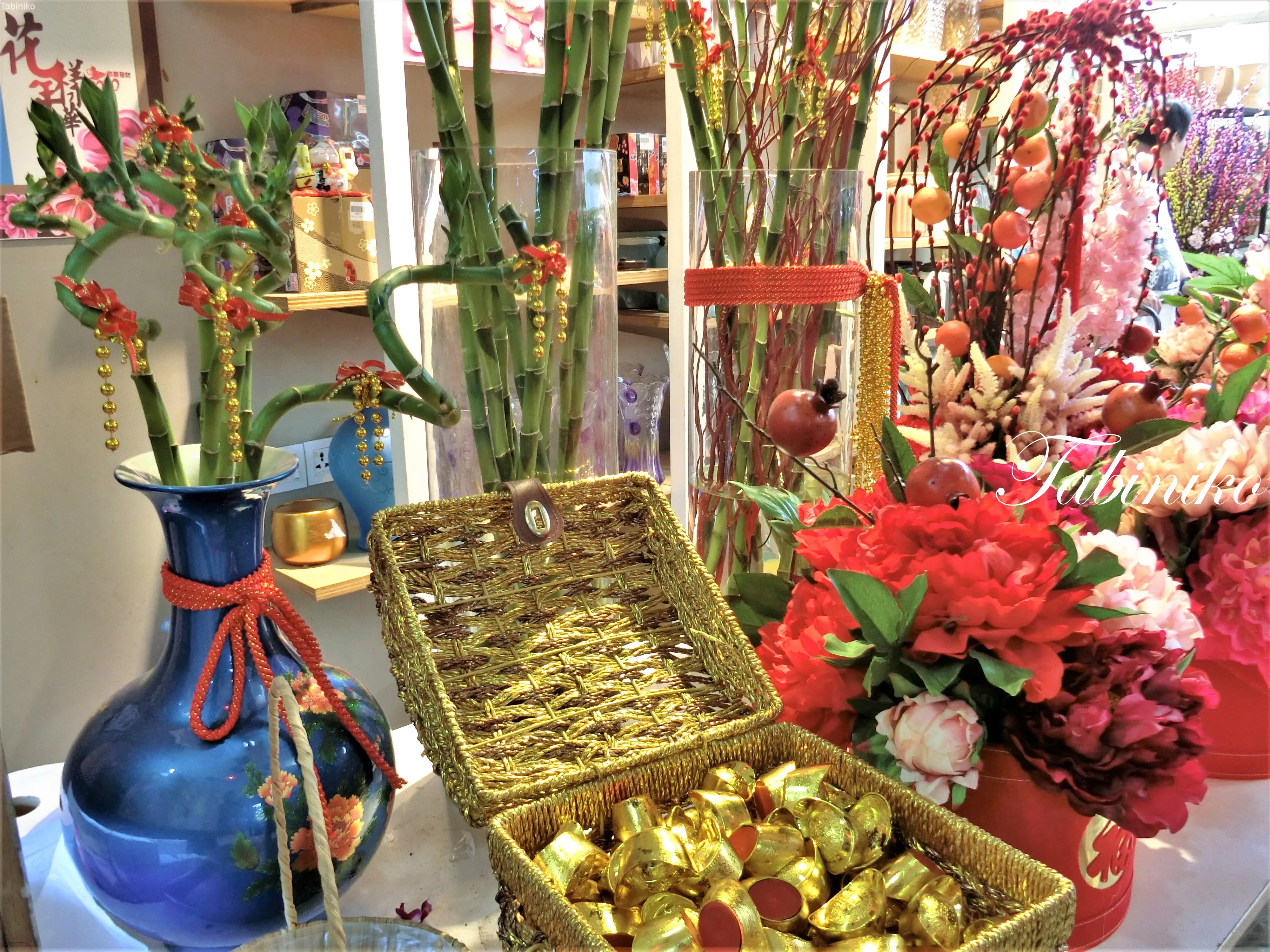 中華系は、旧正月はこういうバンブー飾りを家の中に飾ります。