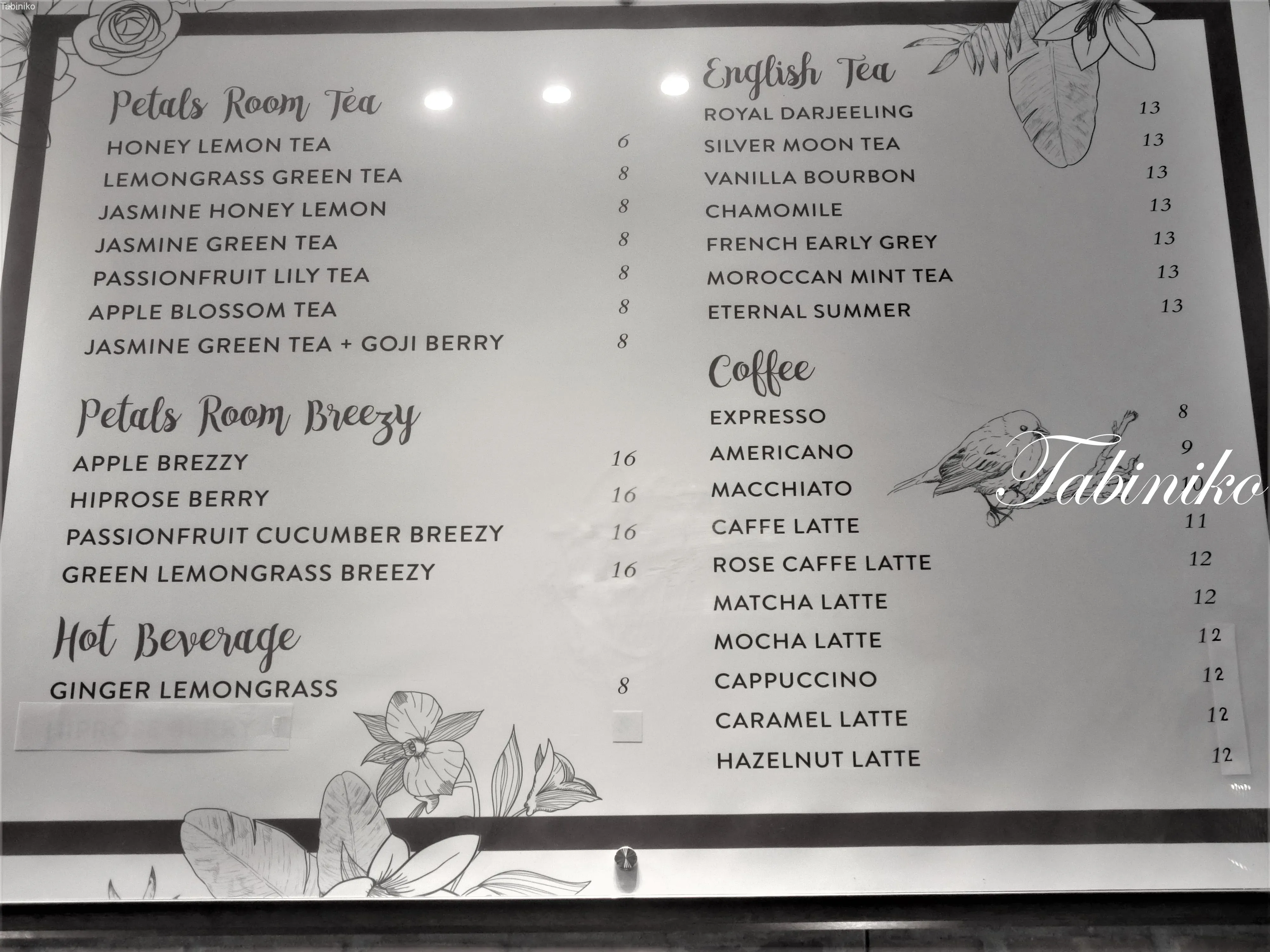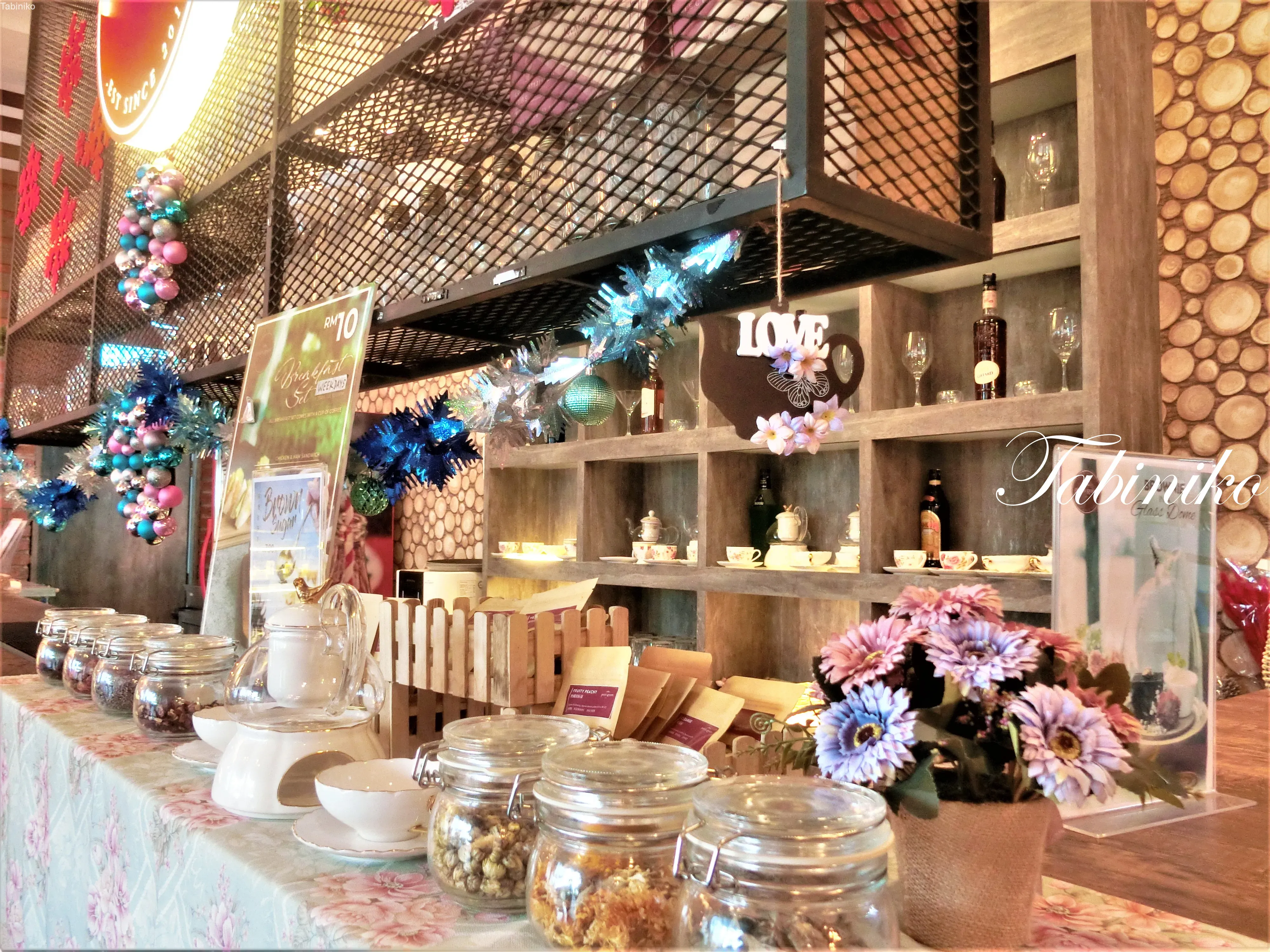 さらに、店内にはカフェも併設されています。朝食、ランチ、ディナー(たぶん?)や、アフタヌーンティーセットまで楽しめます。メニューの種類もとても豊富なので、ぜひ上に載せた写真のメニューをご覧ください。