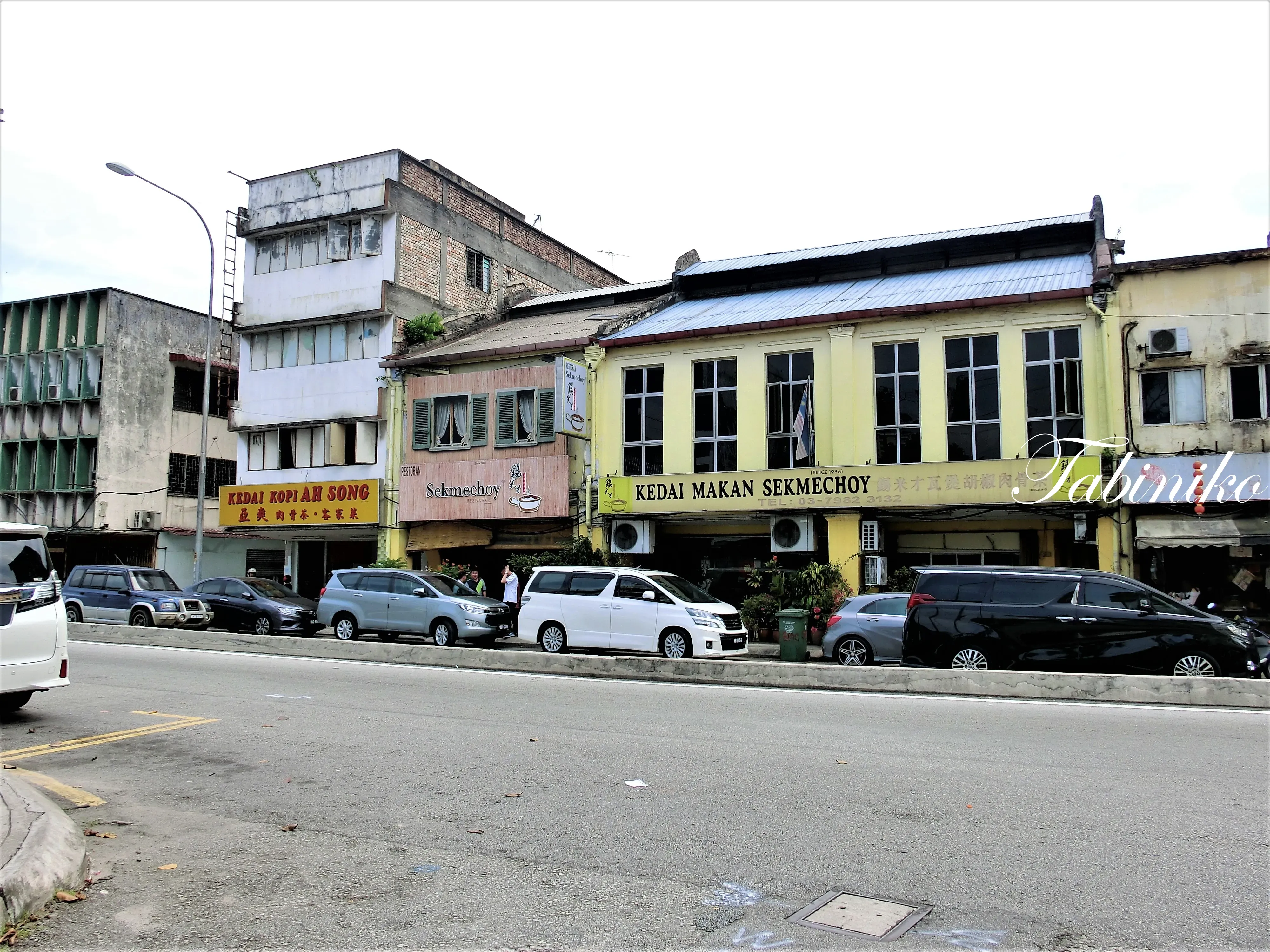 左斜め前がRestaurant SekMeChoy 錫米才胡椒肉骨茶。駅の方に駐車出来るかもしれませんが、店の駐車場はありませんので、電車で行くのが無難です。