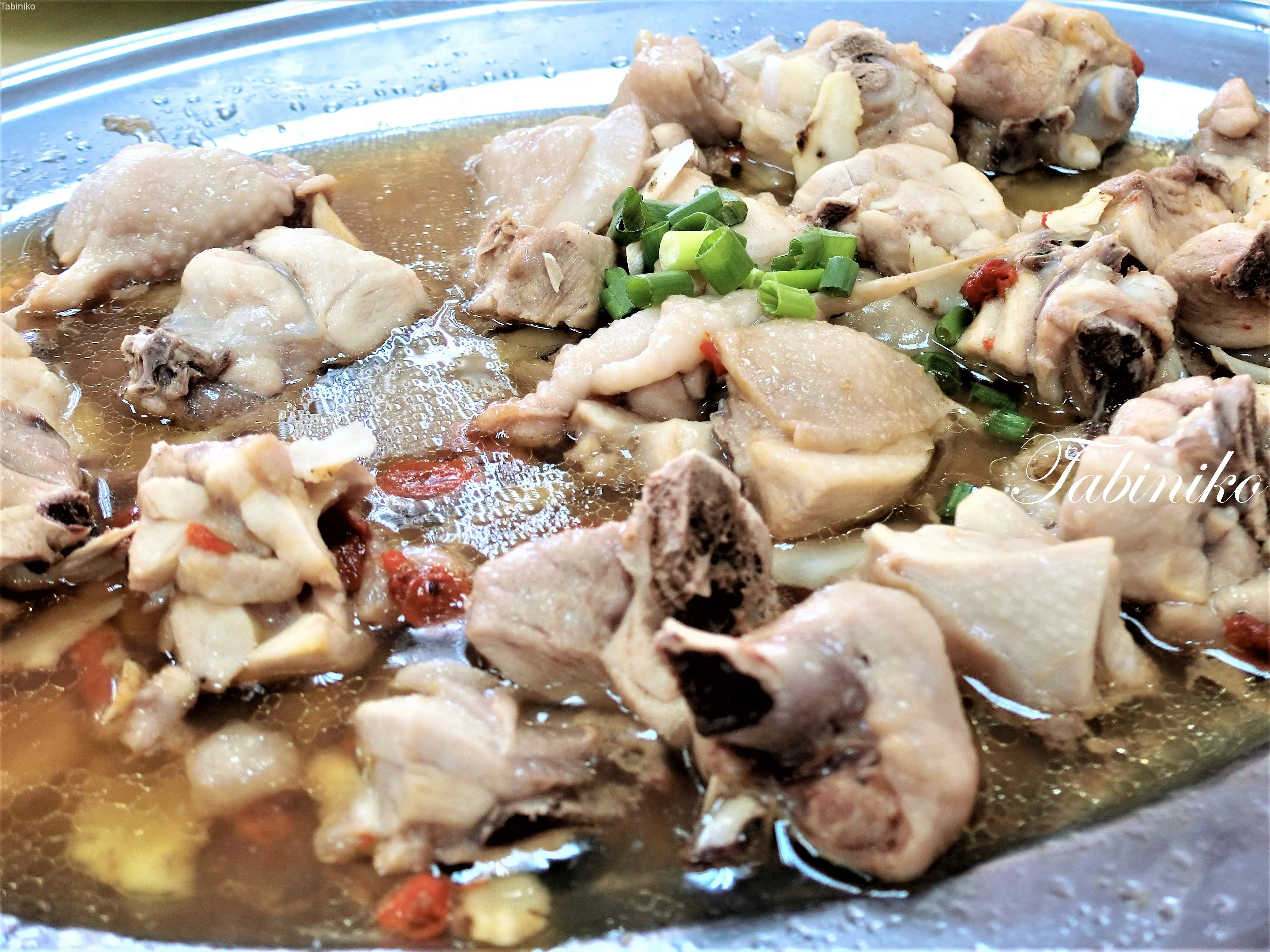 そして『盐酒药材鸡(塩酒の薬膳蒸し鶏)』もおすすめ。塩と中国薬膳と一緒にアルミホイルで包んで蒸した鶏で、白ごはんとの相性が最高!