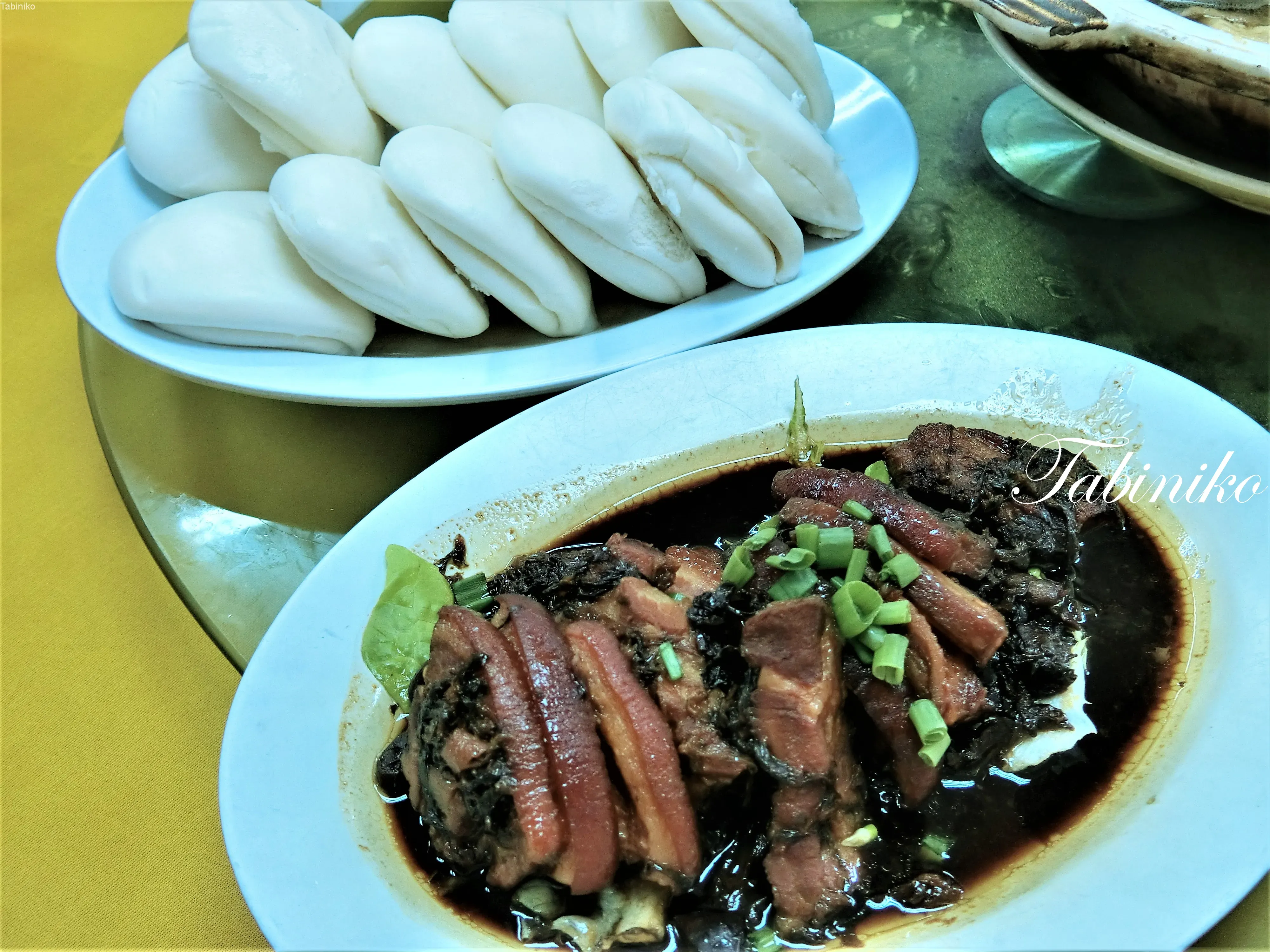 手前の豚の角煮を奥のパンに挟んで食べます。これはとっても美味しくオススメです(#^^#) まぁ、やめられない。。。
