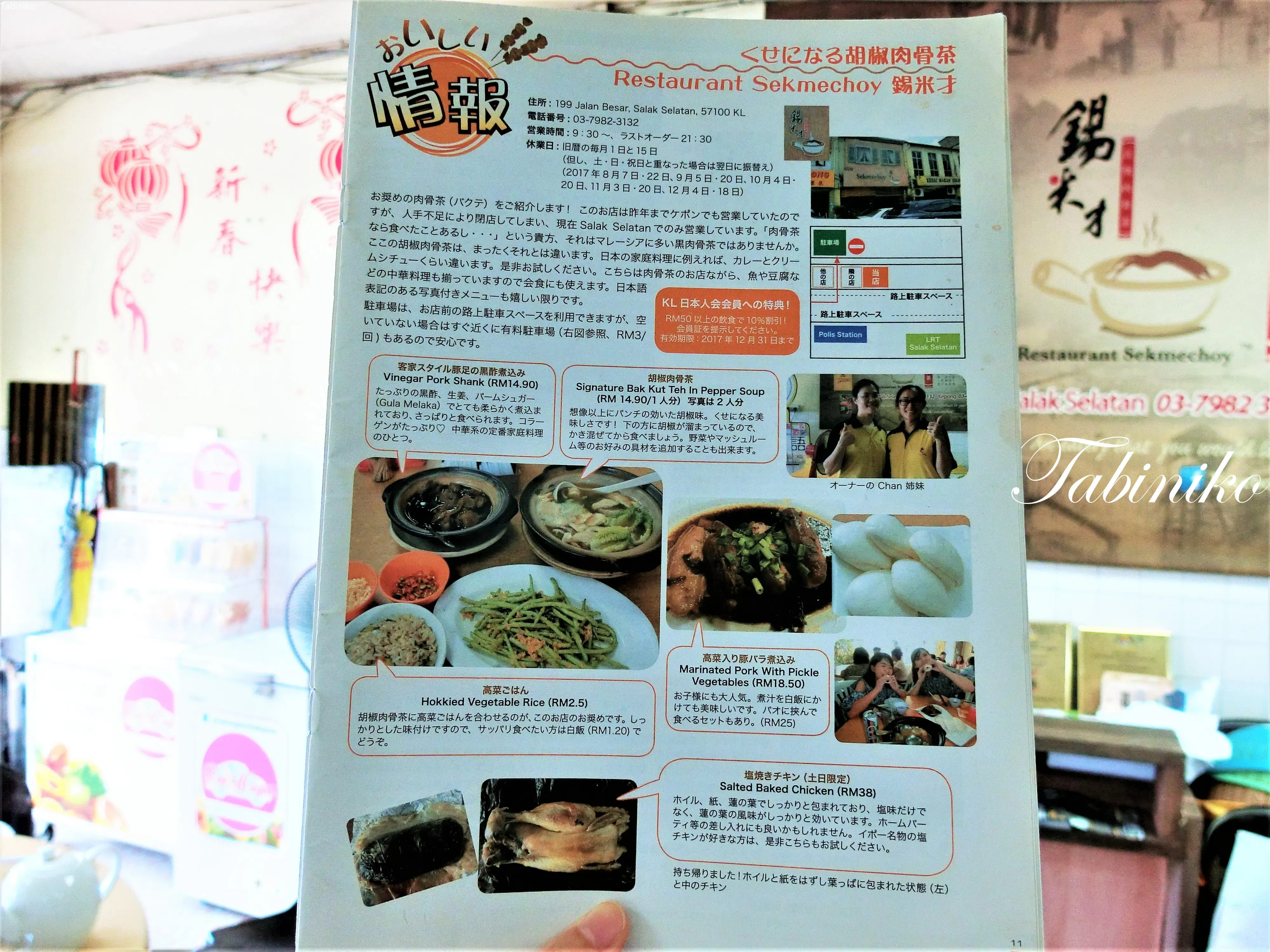 マレーシア名物、美味しい肉骨茶(パクテー)!!in KL。こちらの店はユニークなパクテー、胡椒肉骨茶(パクテー)を販売しています。 なんと日本人会会員のカードを提示すると、10%オフ。(日本人会会報2017年8月)。会報には2017年12月31日までと書いてありますが、私が行った時(2018年7月)でもまだ有効だったのようで、念のために電話で予約した時、「日本人会会員のカードで10%オフはまだ有効か」を確認お願いします。