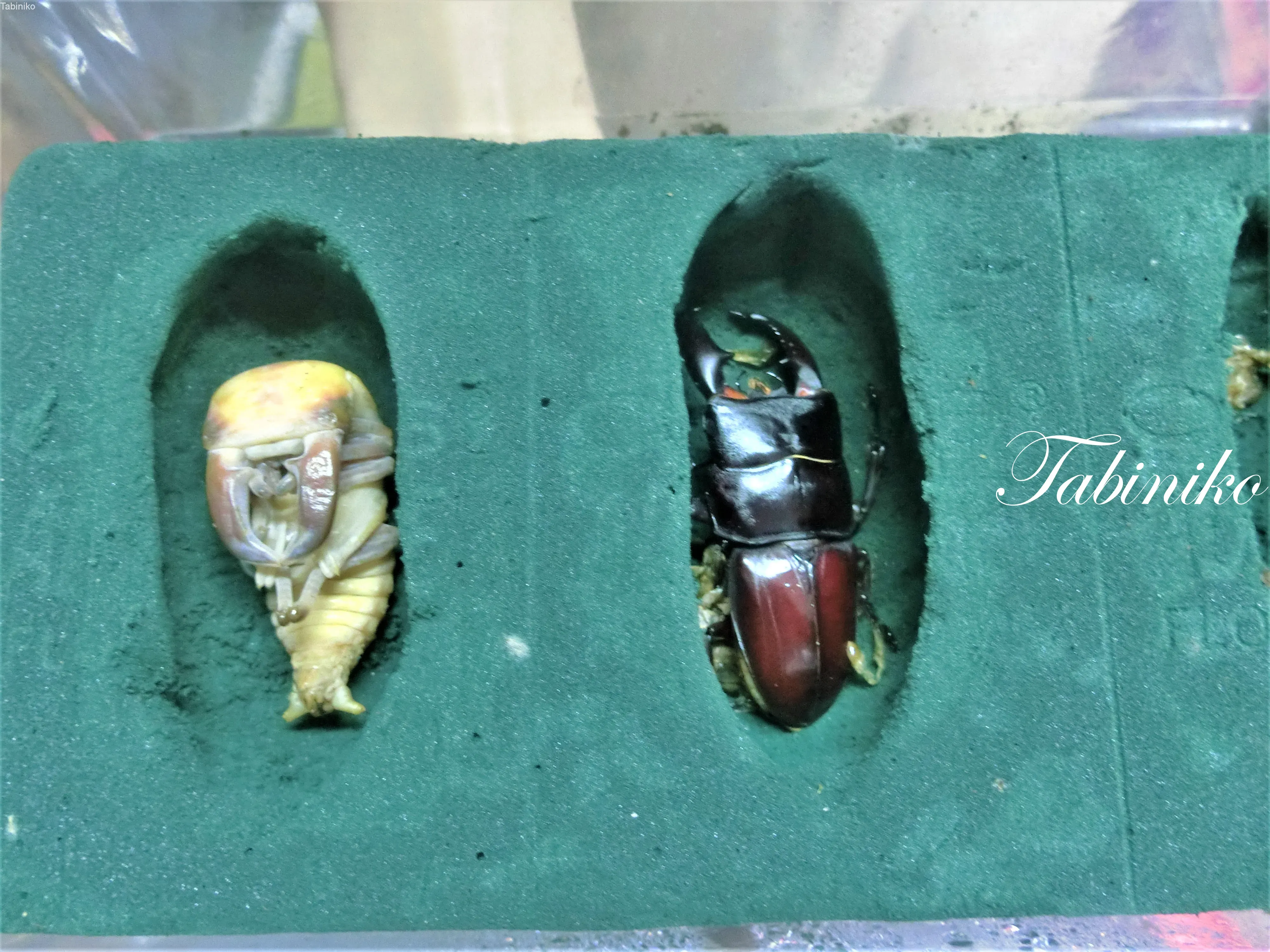 幼虫。昔私の父が茨城の裏山で採ってきたカブトムシに卵を産ませて幼虫になり、羽化をさせて育てていました。懐かしい。
