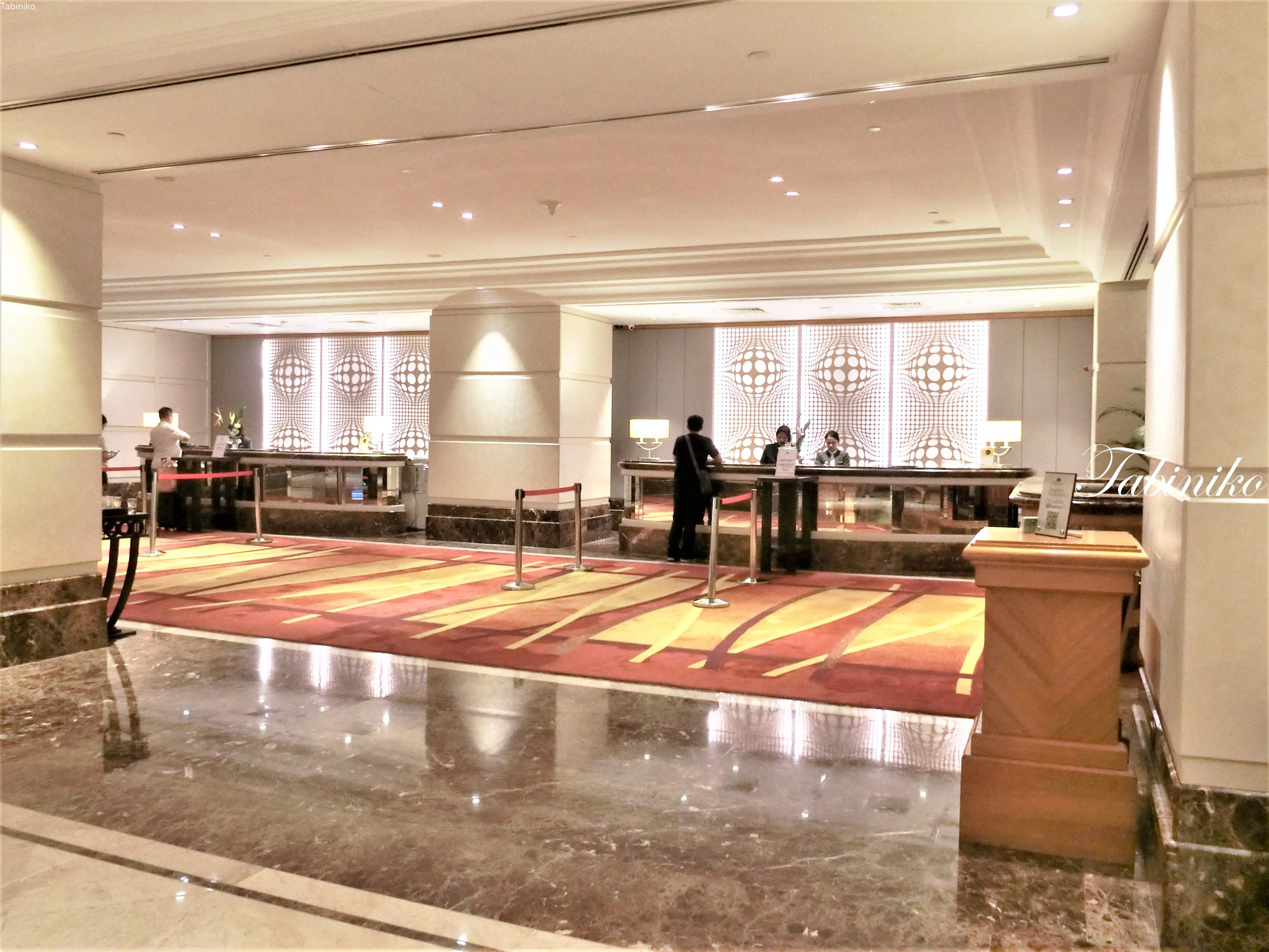 受付は9階にあります。電車で来られる方は、駅からリンクブリッジを通ってショッピングモールに入って、一度地上階に下りてショッピングモールから出て、別のホテル入り口から9階へ上がります。