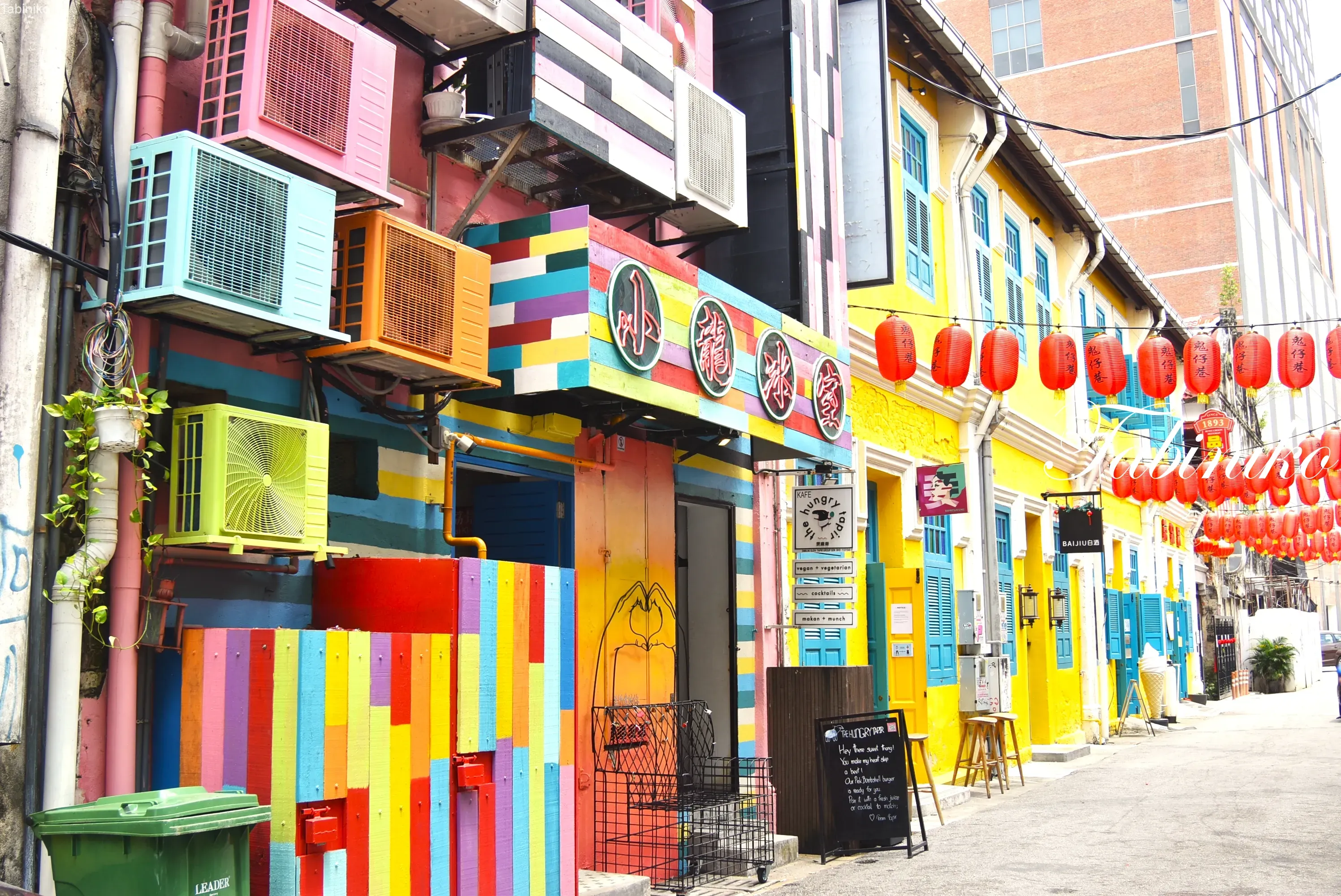 裏口がおしゃれ!インスタ映えスポットです。お店の看板下のワイヤーの椅子はペナンのアーティストの作品です。