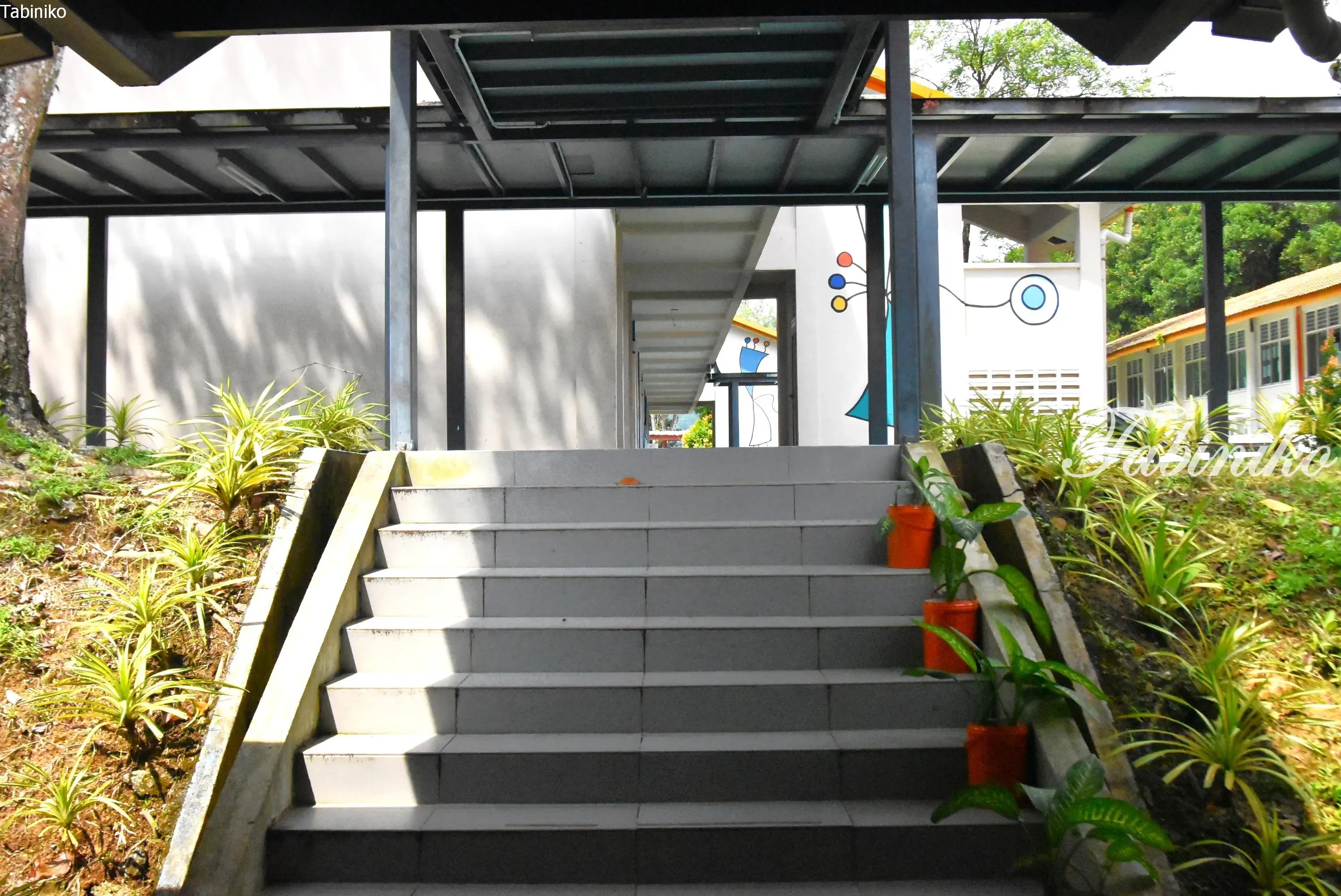 廊下の横にもグリーンや木があって、学校にいるだけで気持ちよかったです。自然いっぱいの中のかわいい壁画が映えますね!!