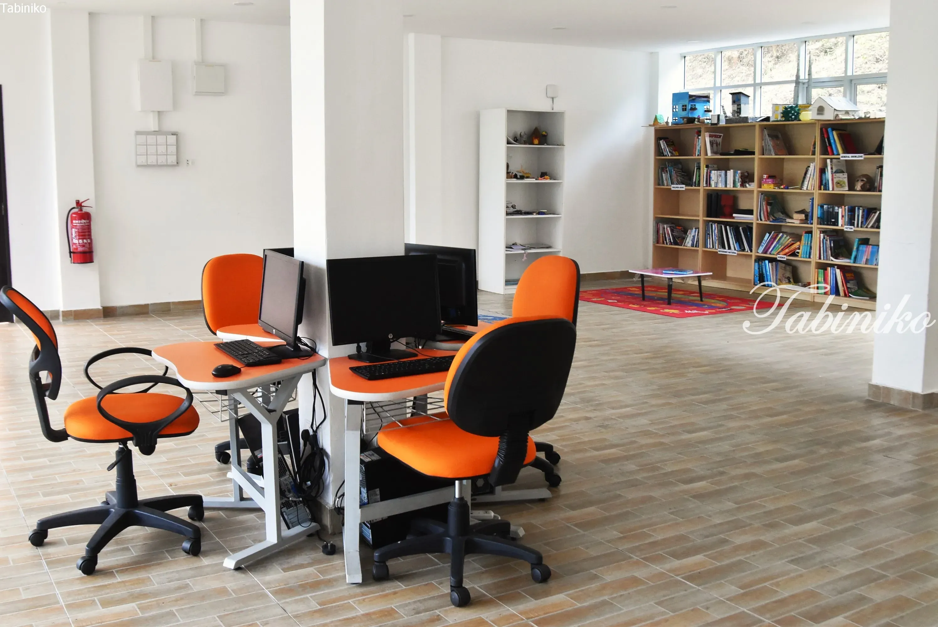 壁はガラス張りになっていて、山を見ながら勉強したり、皆で集まれるスペースです。