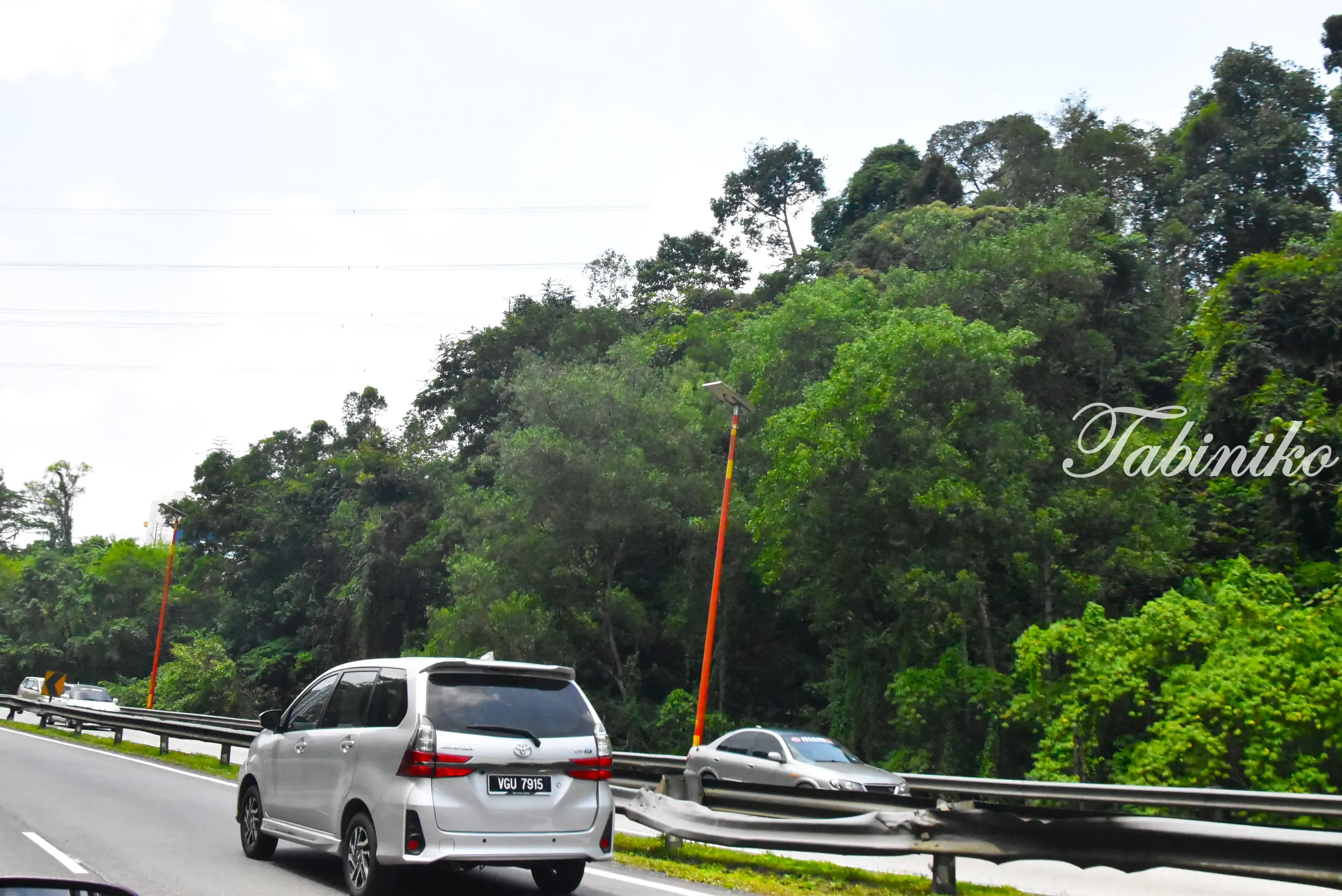 学校近くの大きな道路です。結構な森の中にあります。この大きな道路から更に森の中に車で3分位走った所にあります。
