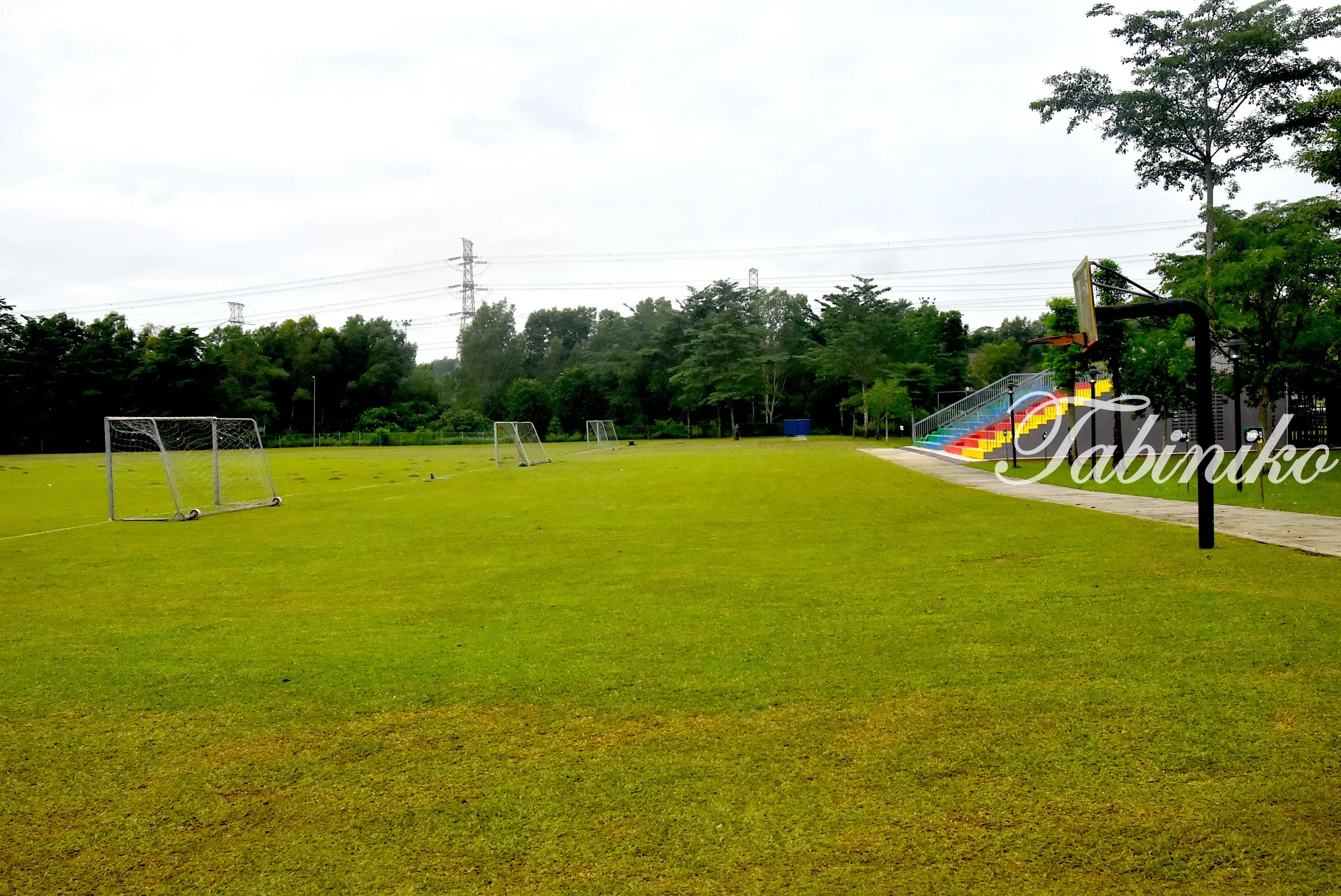 本物のグリーンの芝生の広大なグラウンドもあります。