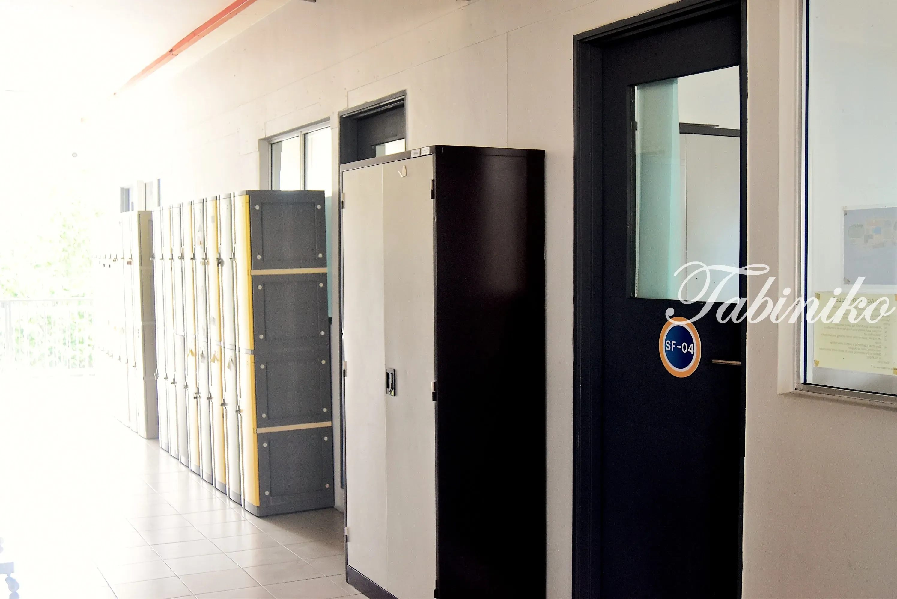 屋外の廊下は屋根が付いているので、雨が降っても広い校舎を移動しやすいですね!!