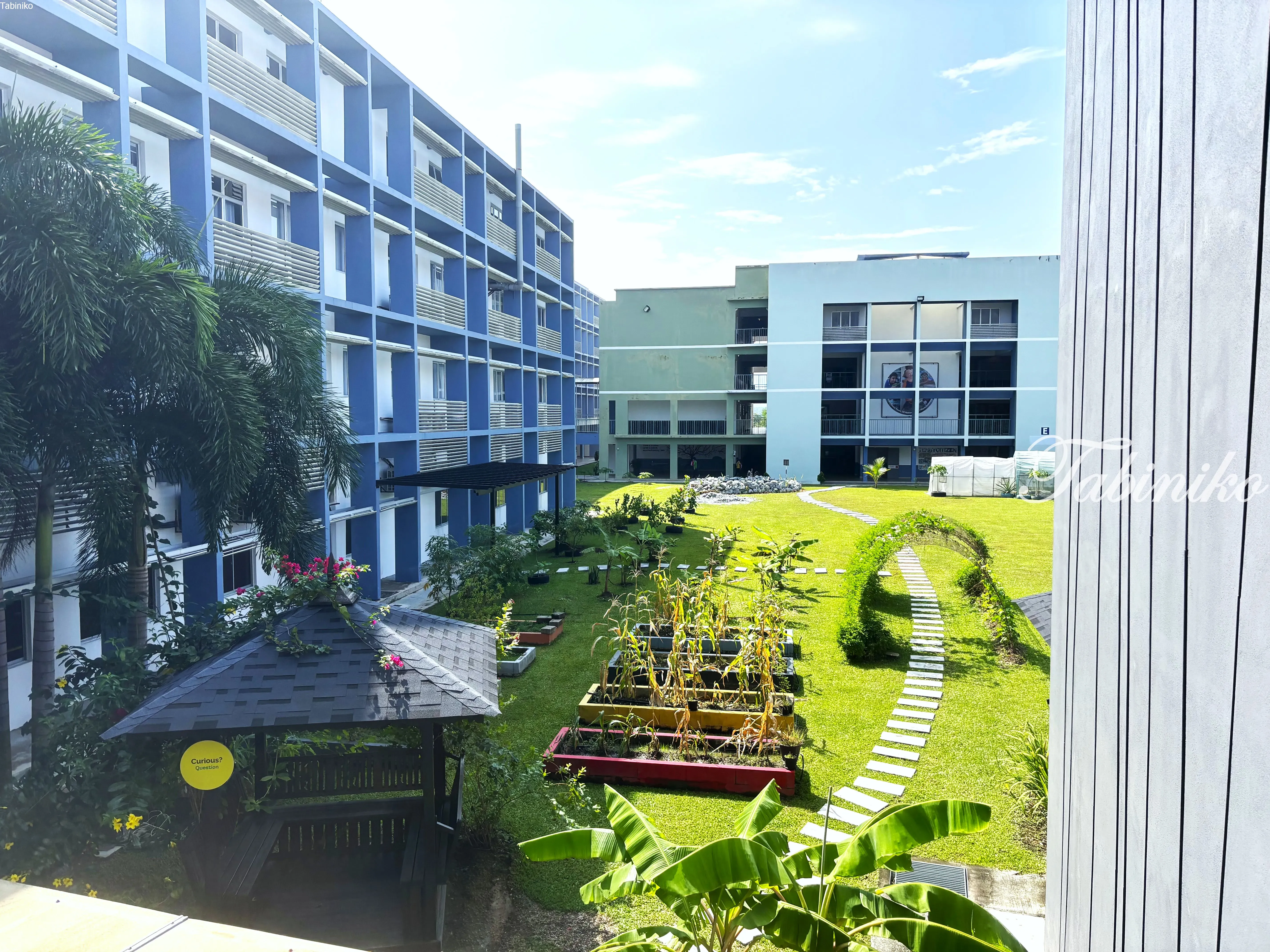 学校の校舎の内側にガーデンがあり、色んな野菜やフルーツを栽培しています。トウモロコシ、パンダン、チリ、バナナ、パパイヤ、ドラゴンフルーツ等等。