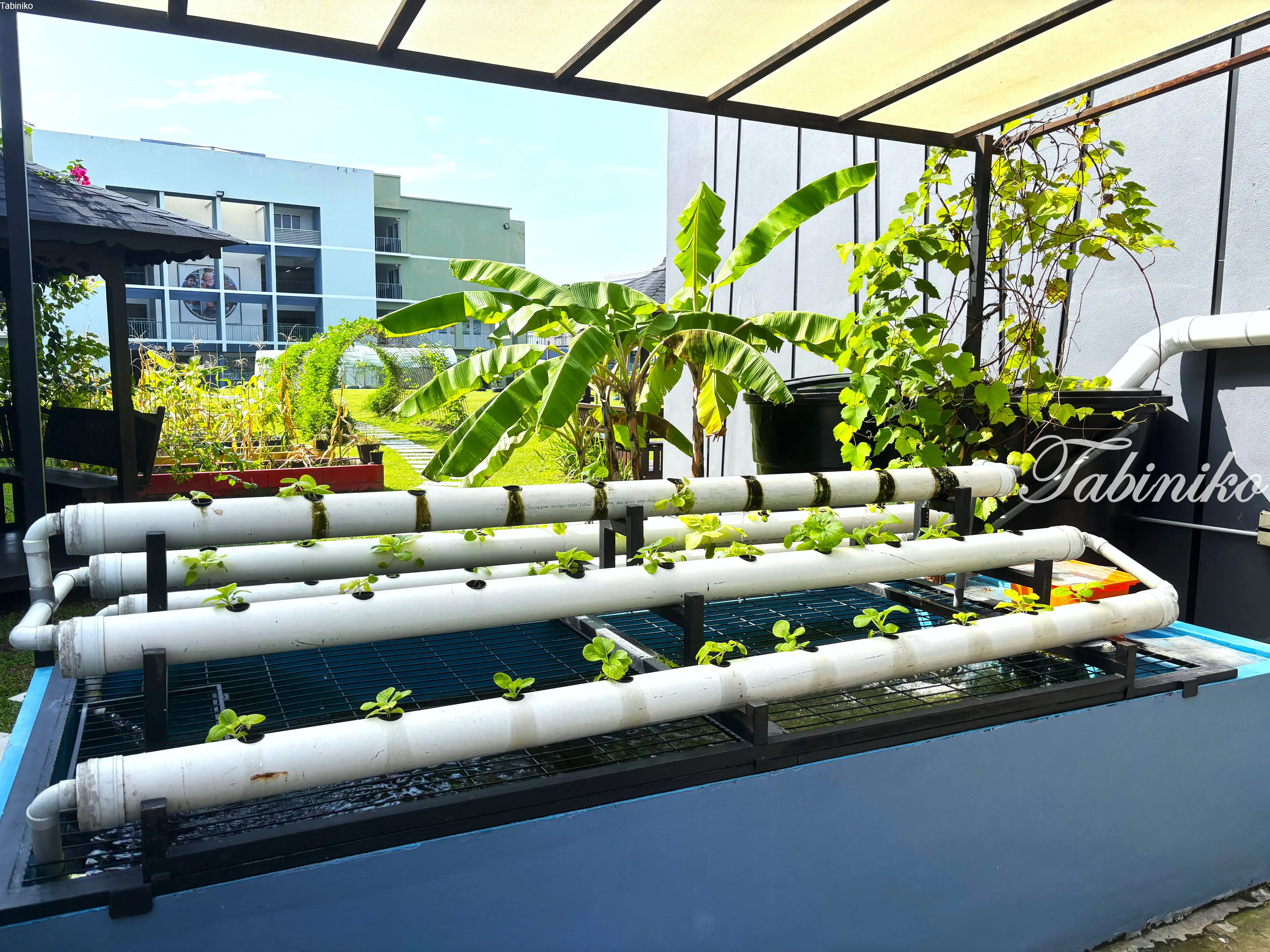 雨水を使った水耕栽培もしています。