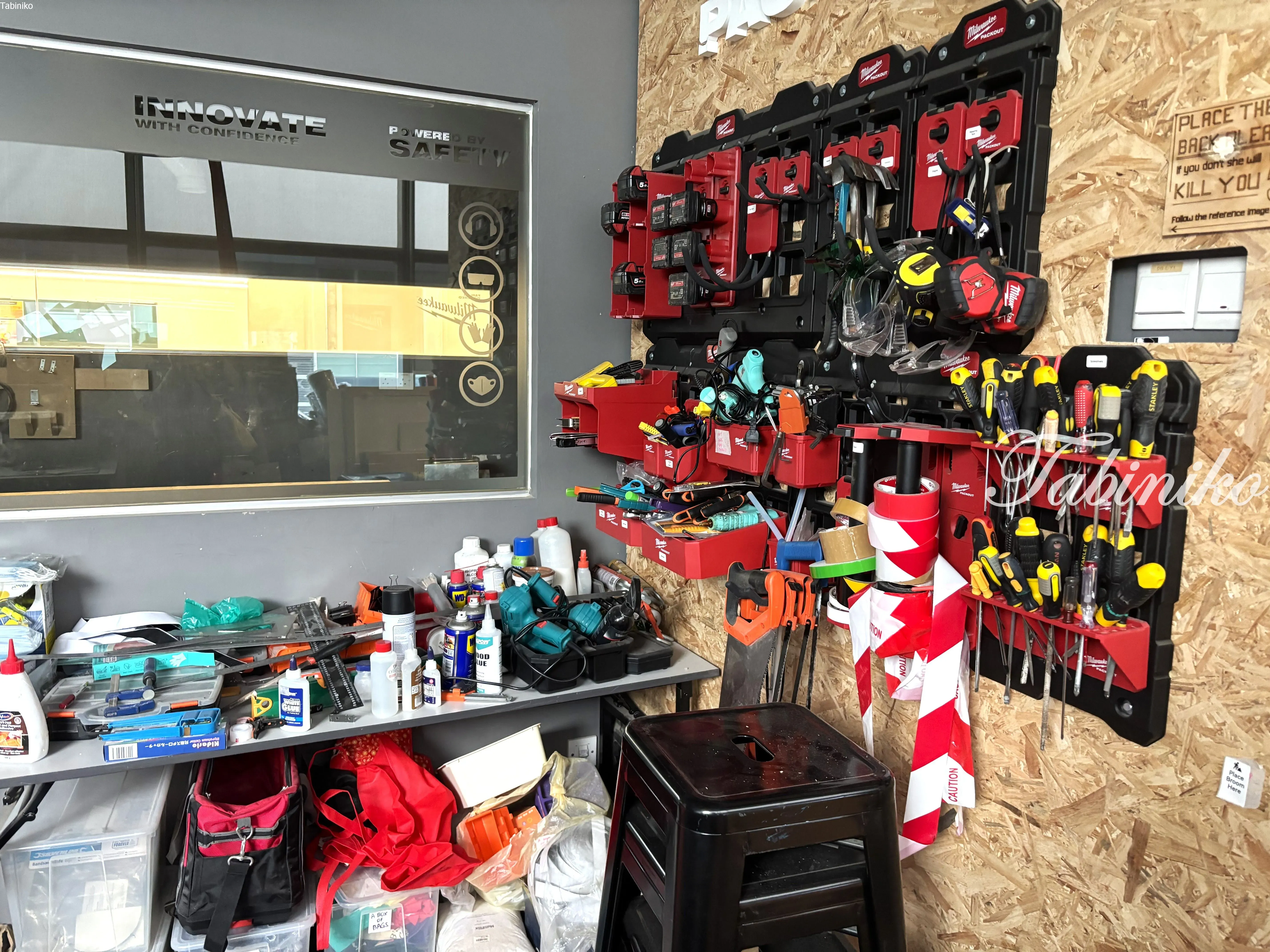 ミシンは工業用で、各教室に置いてあって、全部で100台位あるんじゃないかと思います。