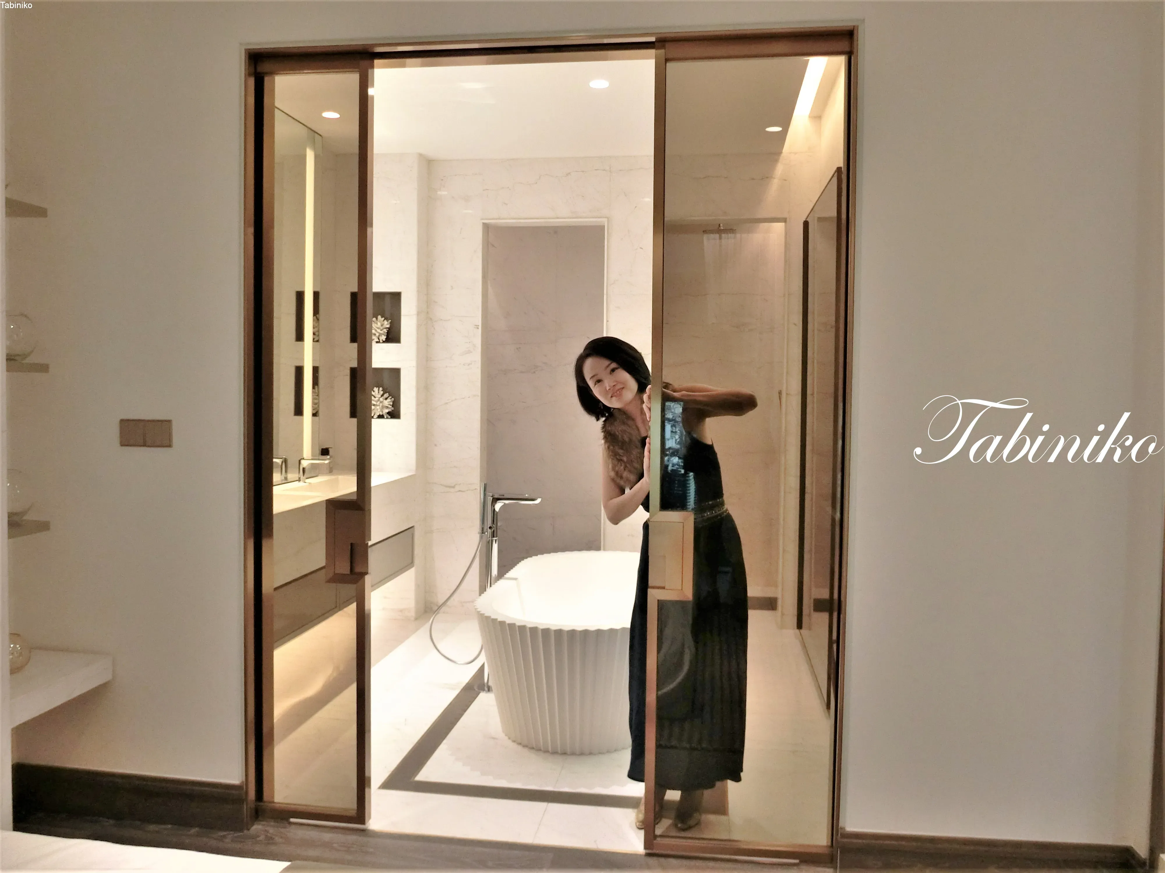 主卧室。 浴缸在宽敞浴室所中间。 双水槽、独立淋浴间和大理石墙(请现场确认材料)。 在宽敞的浴室里可以放松。 注意内部! 要留意室内设计哦!有 A、B 和 C 座。 A座由香港建筑师、室内设计师和产品设计师 Steve Leon 史蒂夫·梁设计的,融合了现代、水和木材概念。 另一方面,B座由世界著名的英国室内设计师 Kelly Hoppen 凯利·霍彭负责设计,她的室内品牌"凯利·霍彭内饰"也在里面摆设,春天和城市的概念。