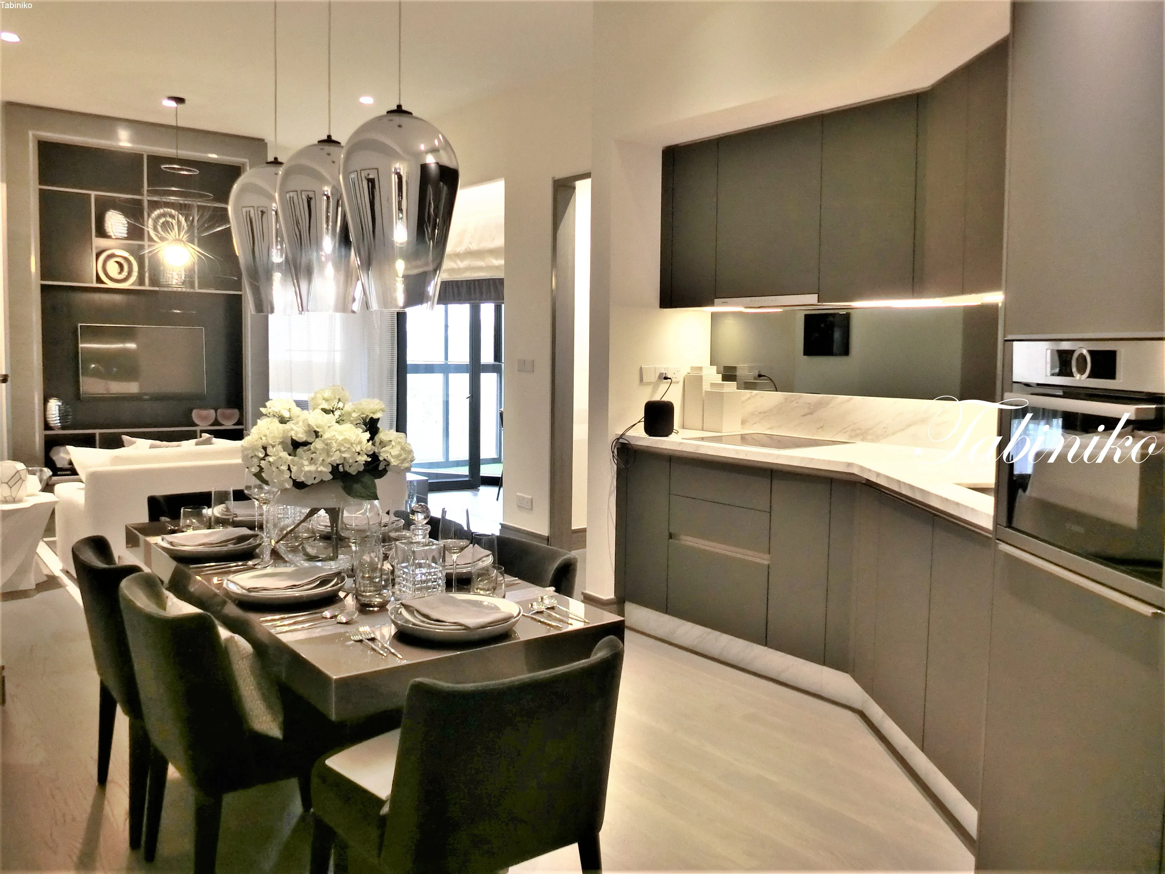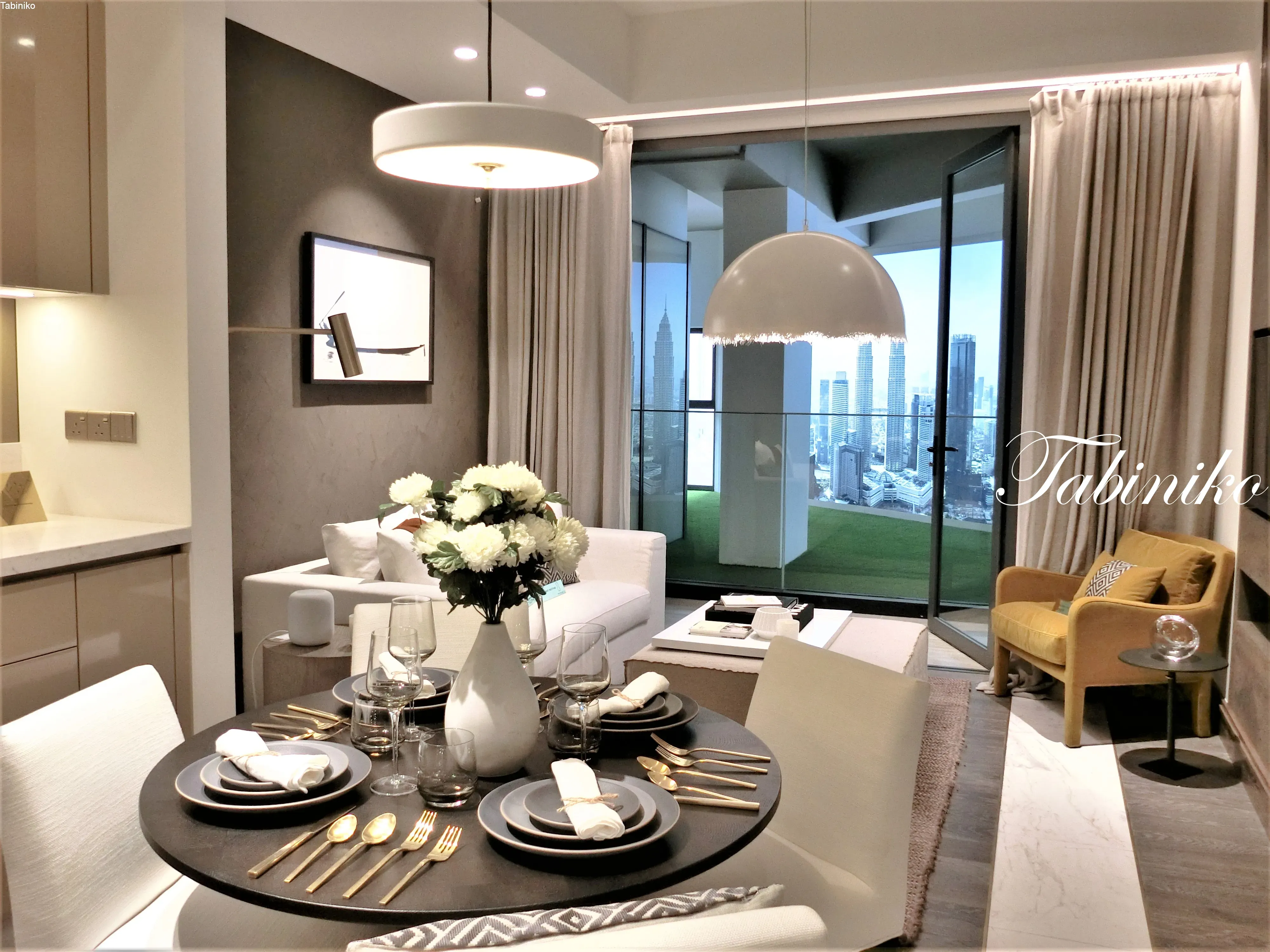 这是餐厅厨房和客厅。 哇,好豪华哦!!! 客厅旁边有一个阳台,部分客房享有双子星塔的景象。还有厨房橱柜、电器和空调(需要在当地确认)。由于它以基本付家具(需要在当地确认)出售,因此无需担心内部的装修或花时间去买家具。 此房产不提供餐具、灯光或部分家具。通常马来西亚的房产在购买后大部分是自己装修的,所以一些配合上的问题很困难,不,是一百倍的难。不同于日本,装修需要很多时间,会感到沮丧,我也经历过。 8 Conlay (YOO8 Residences) 有室内装饰和家具,所以真的很有好,不必担心装修问题!