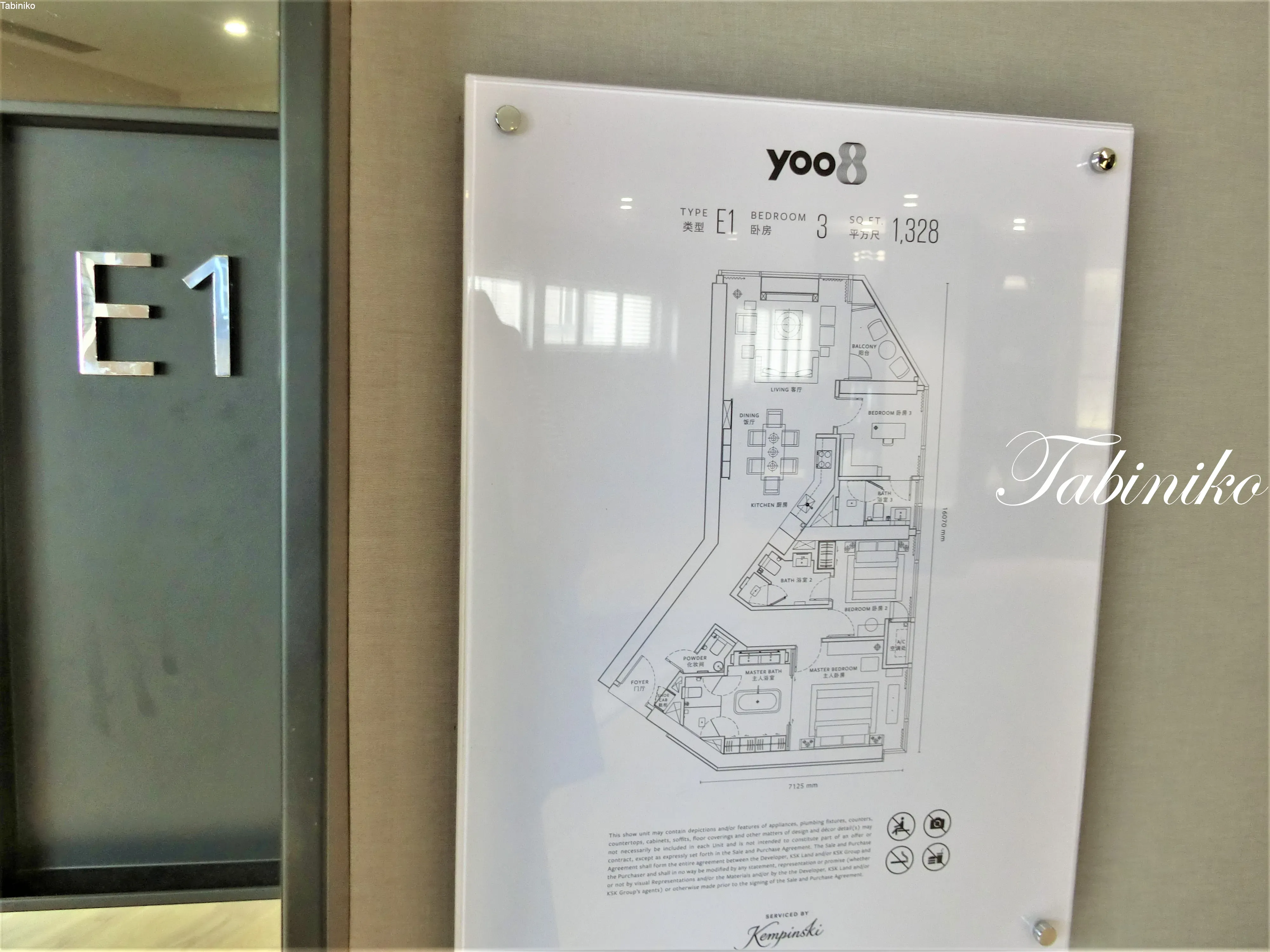 「类型E1 三卧室公寓 1328sqft(约123.3㎡)」: