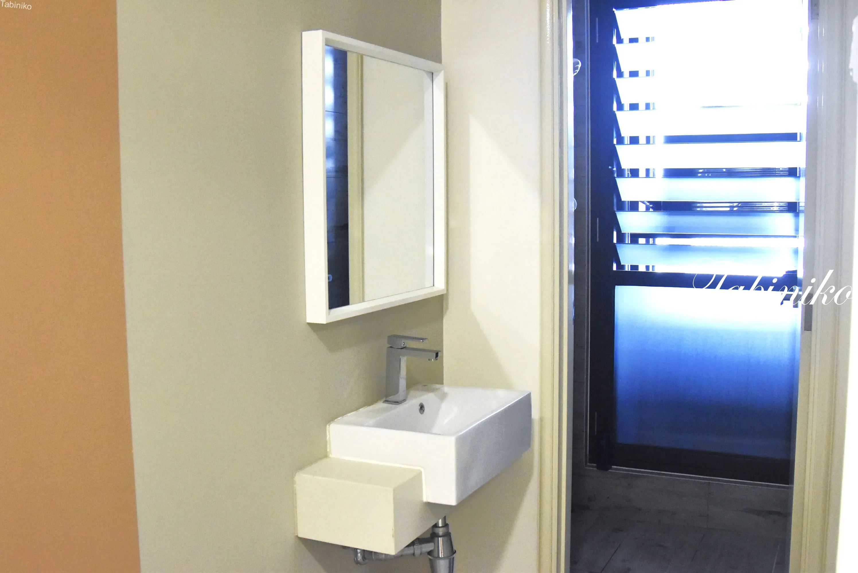 后面有洗脸盆和淋浴房。淋浴房有点窄,但是马桶和淋浴房是分开的。马来西亚的大多数房屋的淋浴间和厕所是一起的。