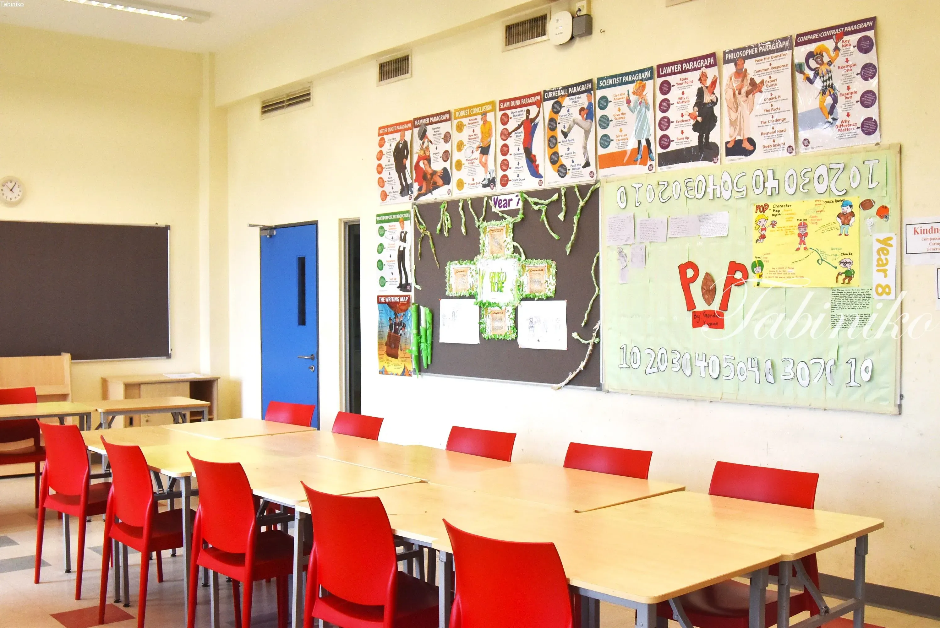 中学部的教室墙上也张贴着各种东西,使教室氛围非常愉快。(#^.^#)