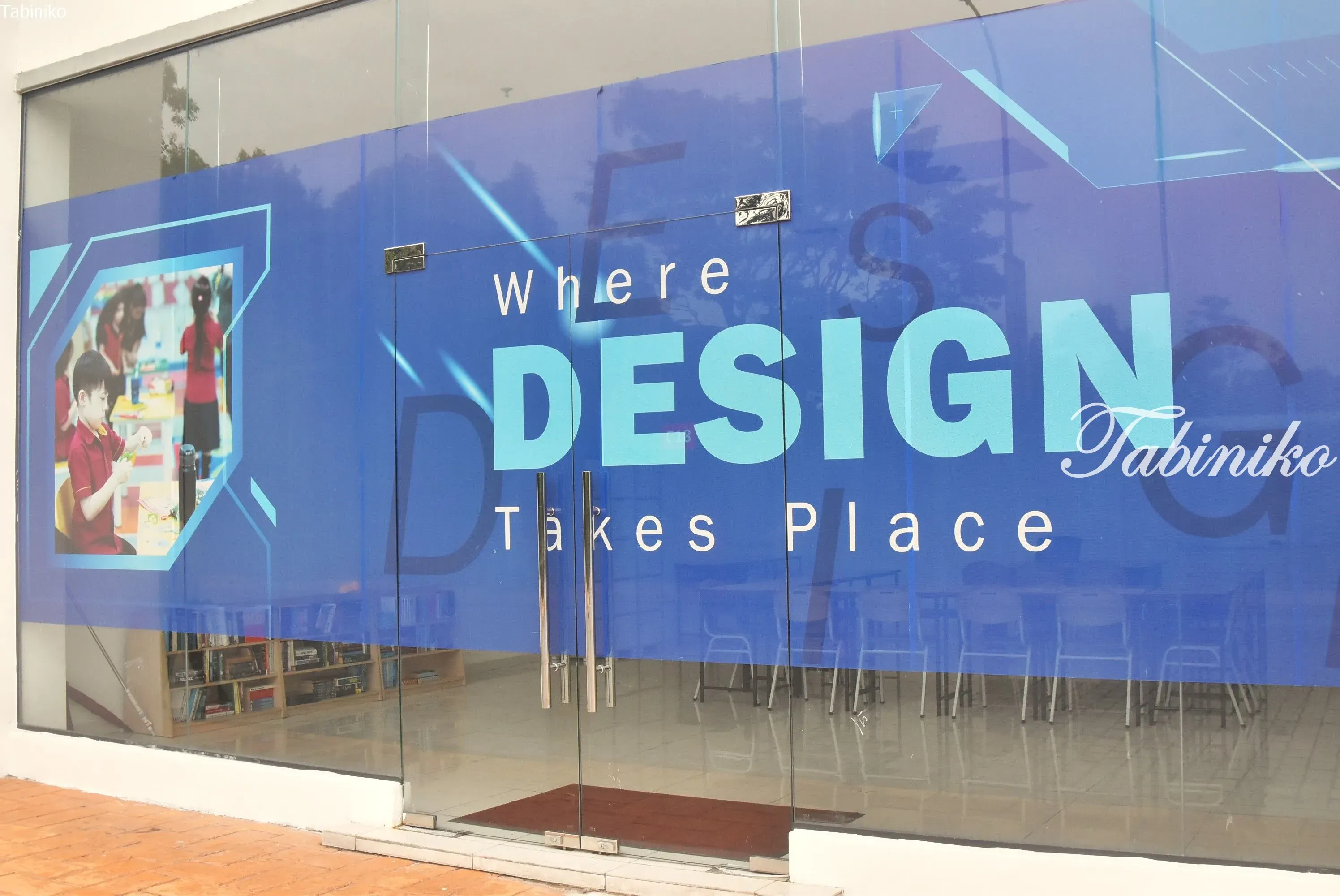 入口的门上醒目地展示着金仕阁国际学校重点推广的STEAM教育介绍。