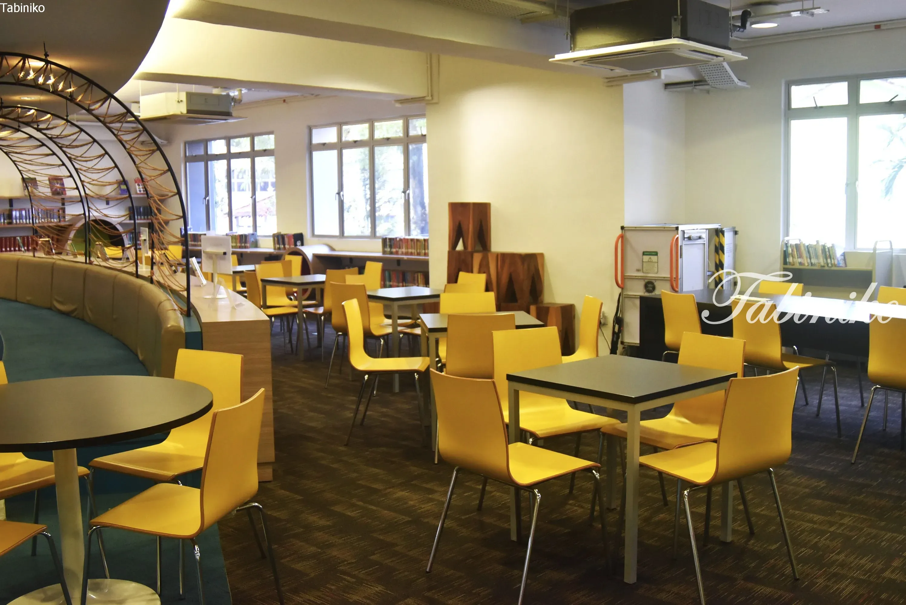 图书馆配备了许多书桌和椅子,方便学生在此学习。