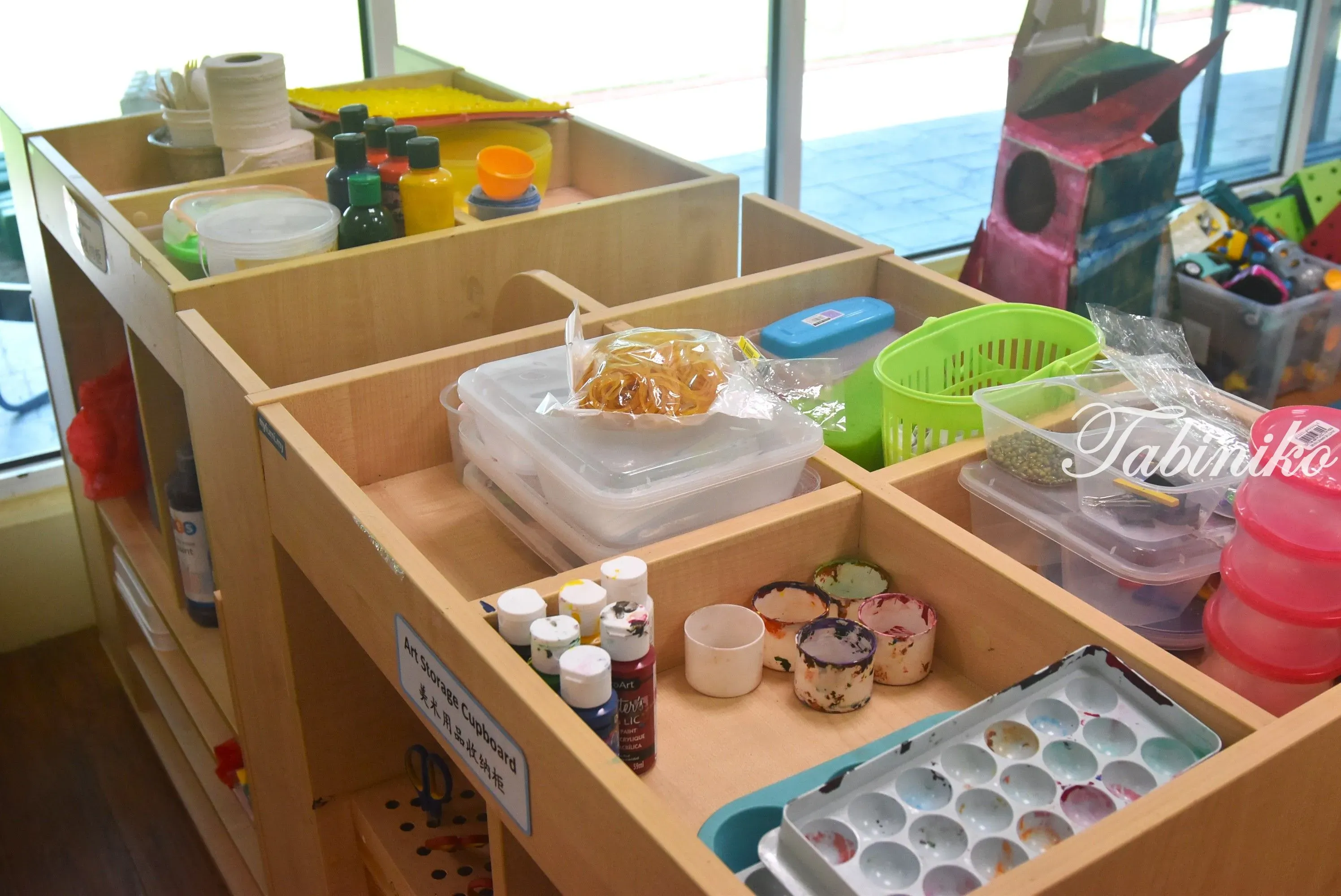 此外,这里还有标注了物品名称的 中英文双语学习板,为孩子们创造了一个能够自然轻松学习语言的环境。