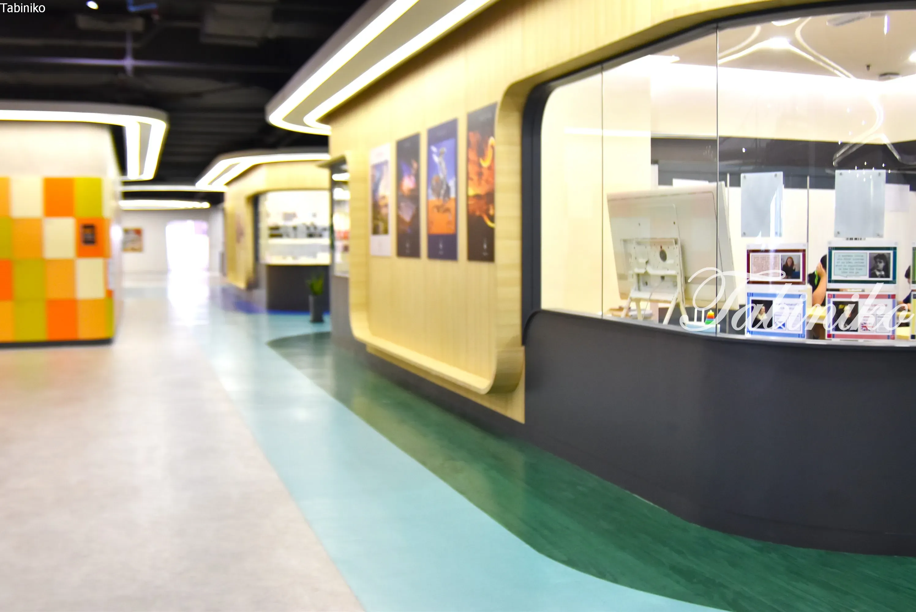 走廊很宽敞,教室都是玻璃墙,可以看到里面的情况,是一个明亮开放的空间。