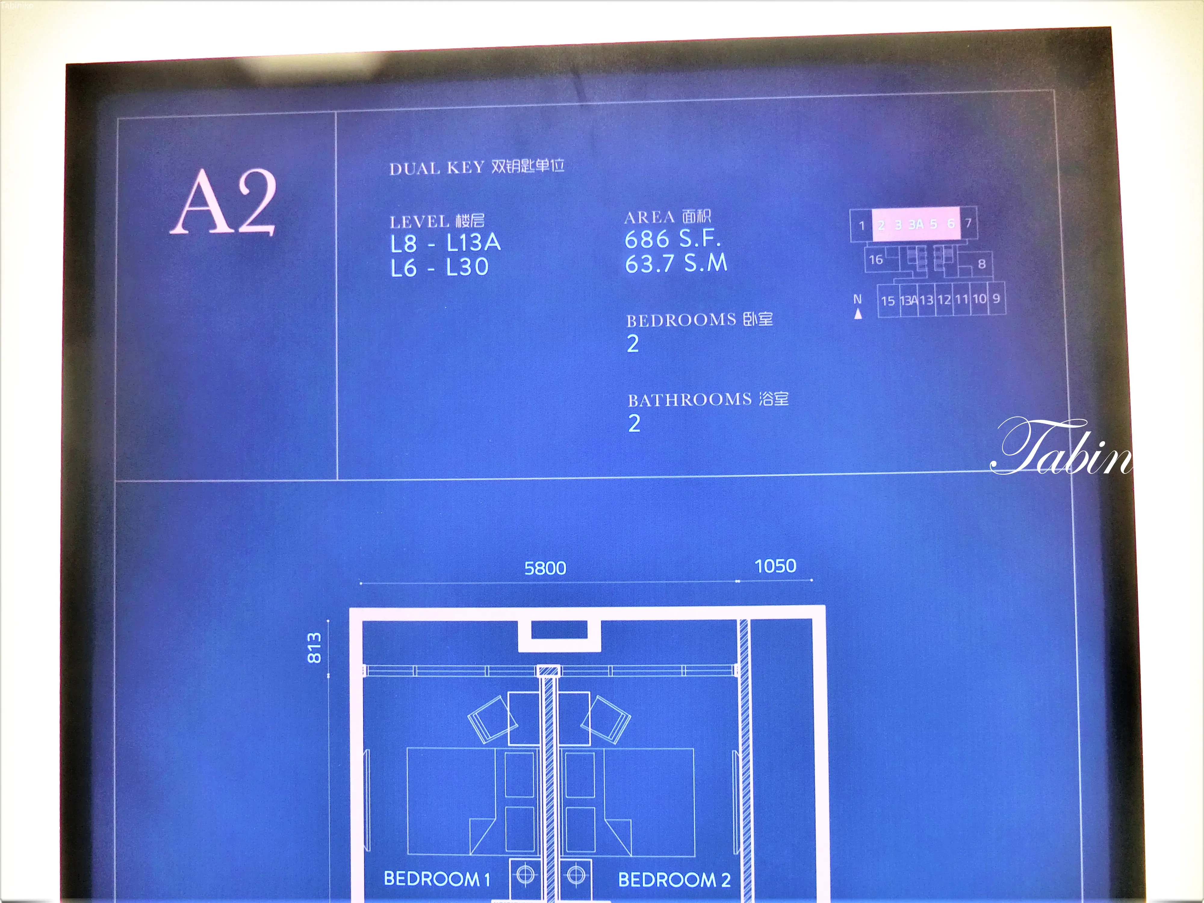 此类型为A2,686平方英尺(2卧室2浴室),约63平方米,双钥匙型。为了详细解释,这是一种房间,您可以在打开门时分成两个单元来单独居住。上面的照片是其中一间房间。厨房,架子区,卫生间,卧室。