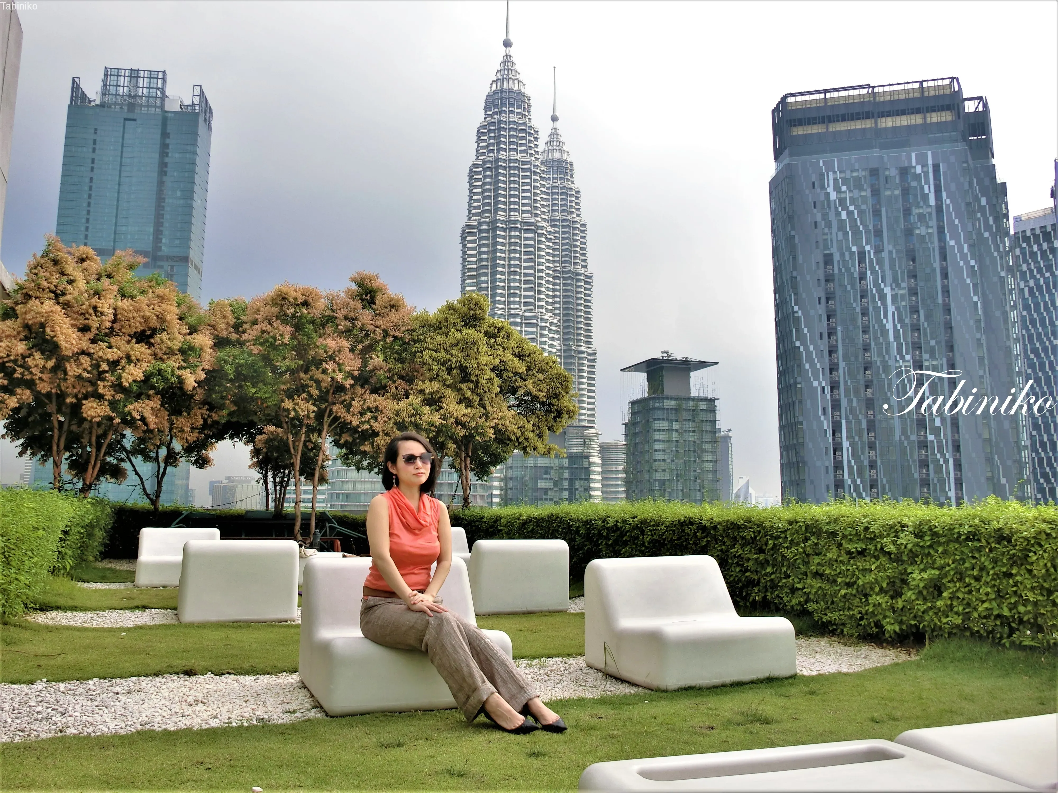 欢迎来到位于38楼的「空中花园(Sky Garden)」。您可以以双子塔为背景拍照。空中花园位于A塔和B塔的顶层,是一个绿意盎然的公园!