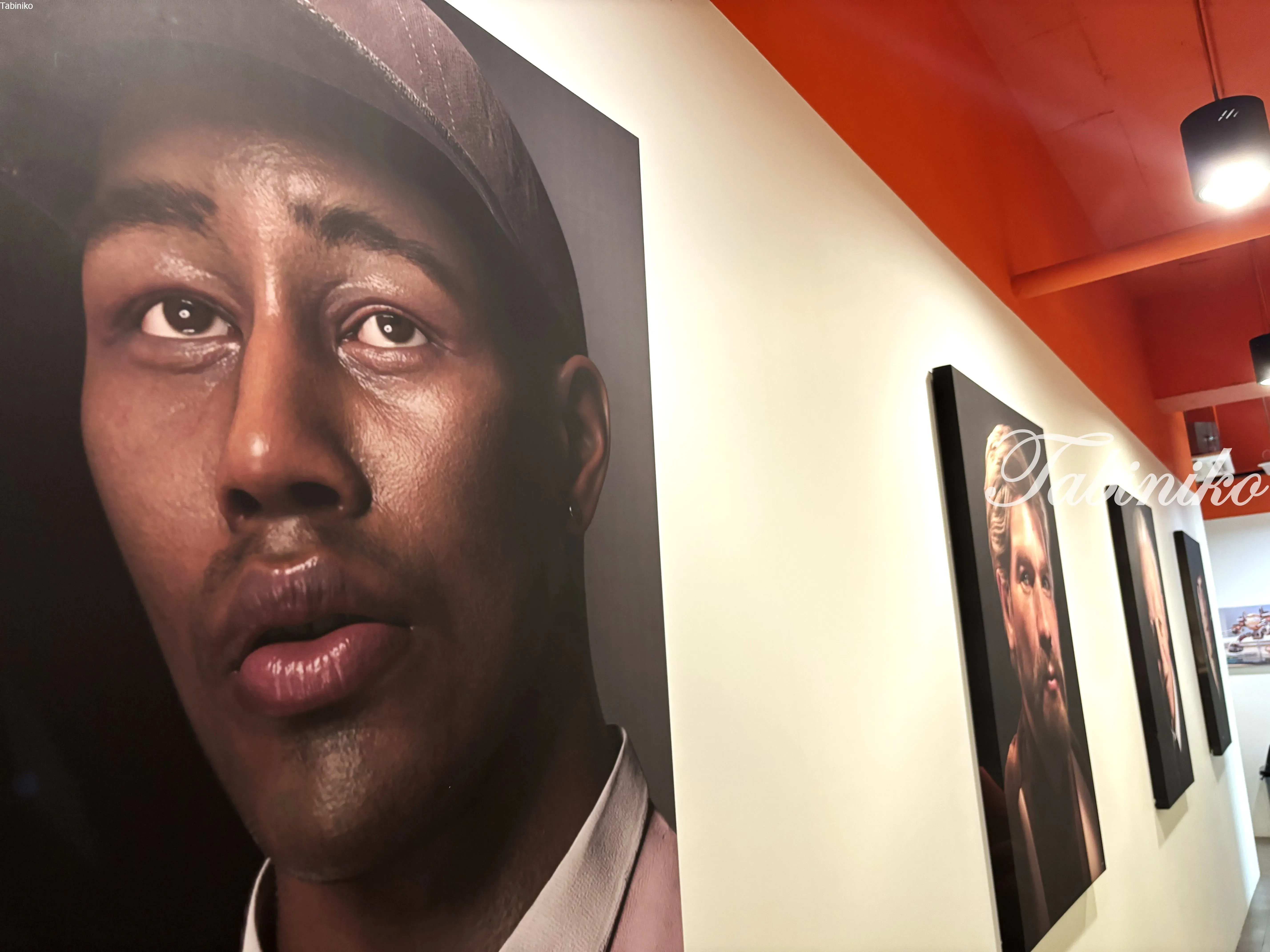 果然是不愧为美术类的学校,从接待处就与众不同!!照片上不太容易看出来,白色部分是柜台,里面有接待人员。白色部分和图画部分是数字化的墙壁,可以播放各种影像。