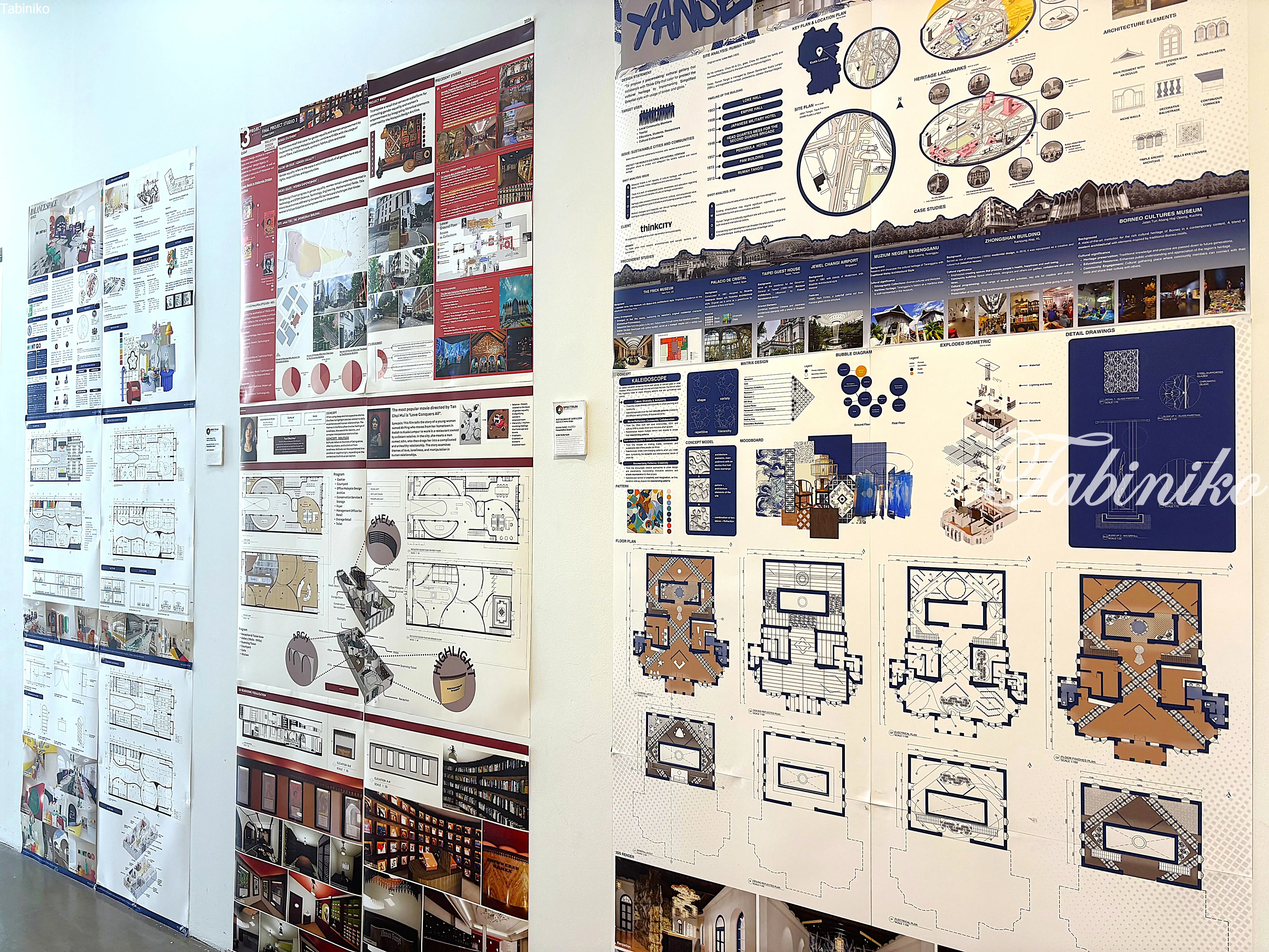 以建筑为主题的时尚。服装上的印花也是学生自己制作的。