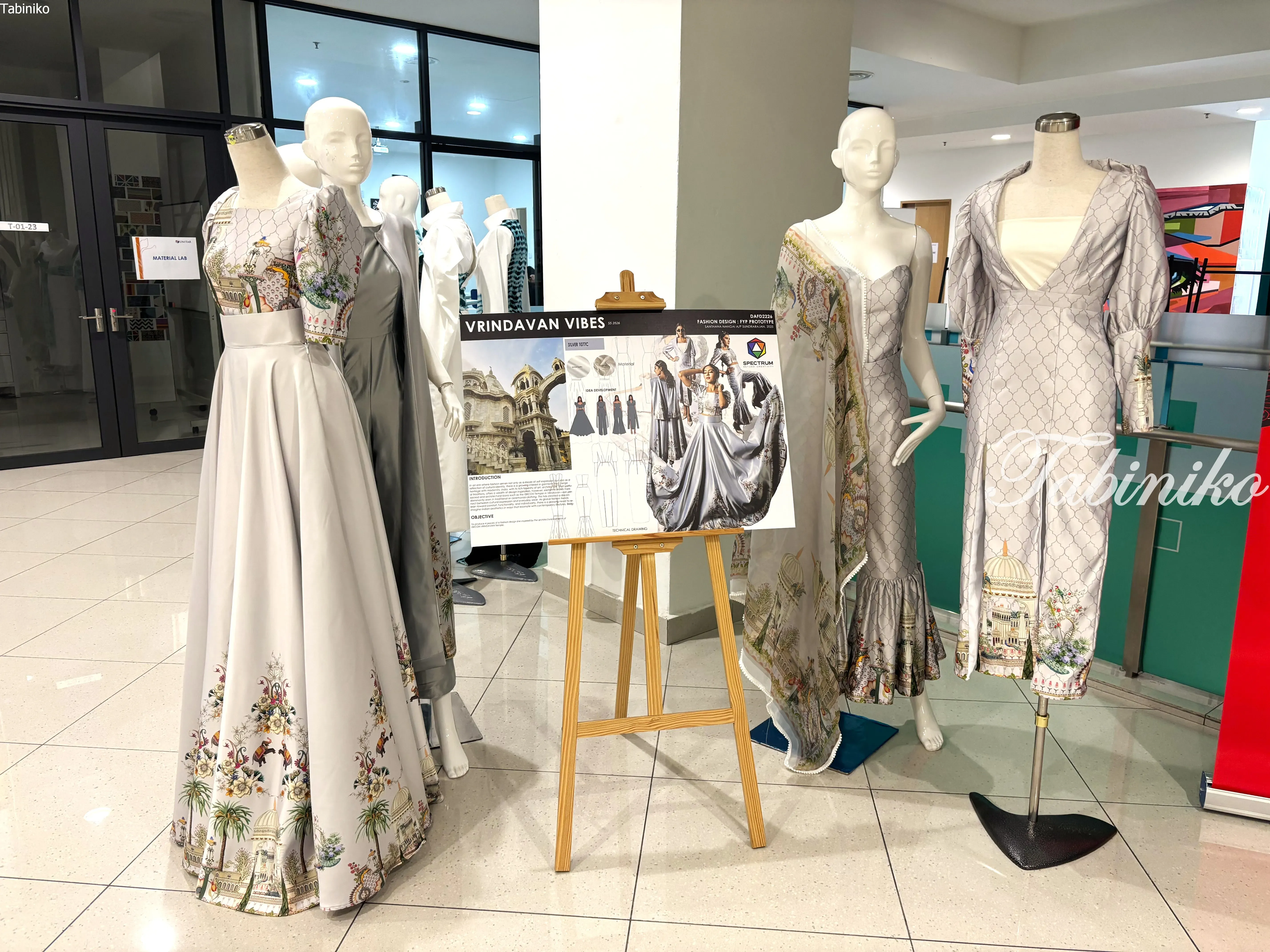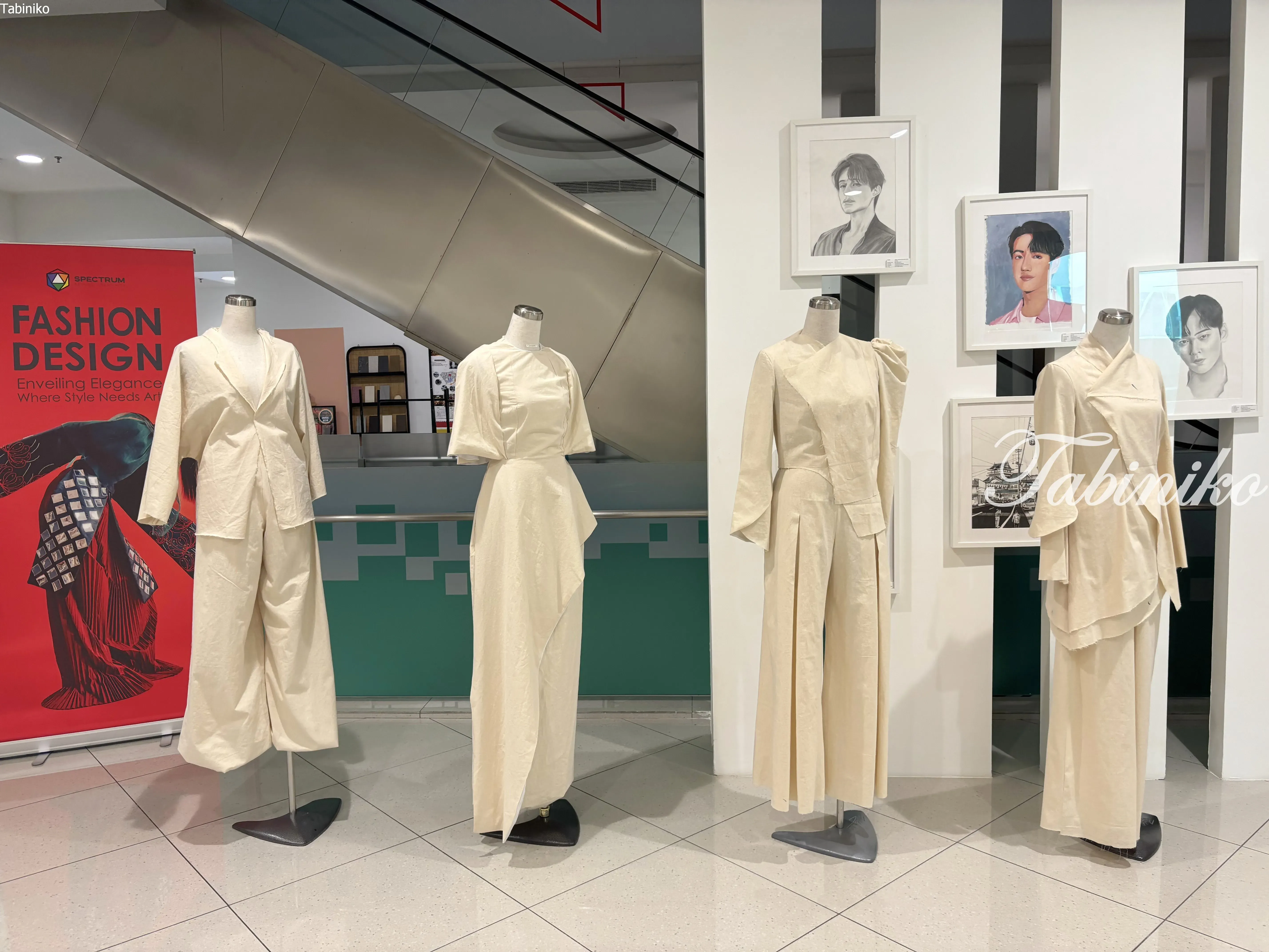这是刚才教室里摆放的服装的帅气照片。服装是学生设计的。