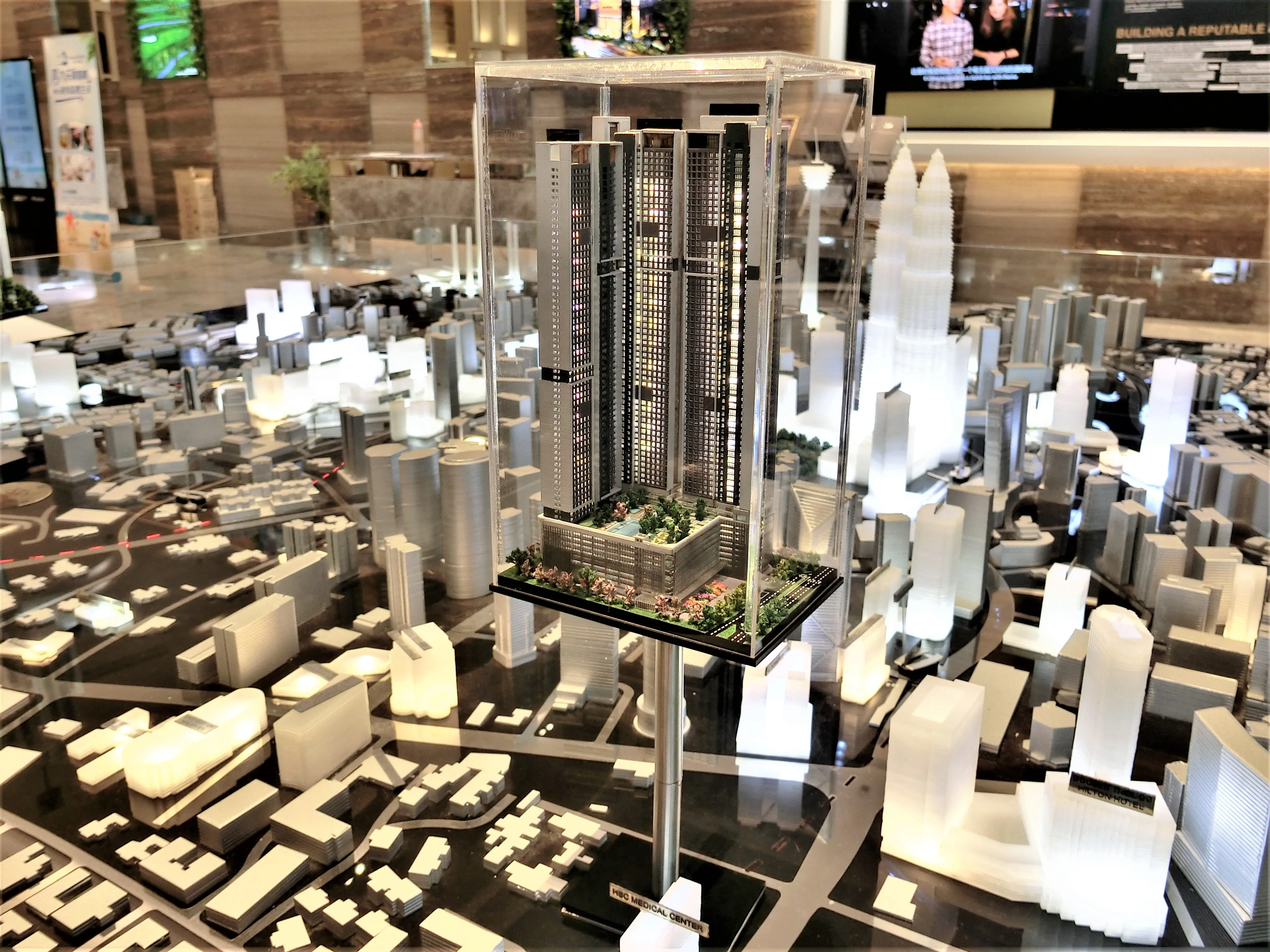 從房間往外看的景觀,可以看到雙子星塔,也可以看到 TRX106(Exchange 106 TRX)辦公樓。