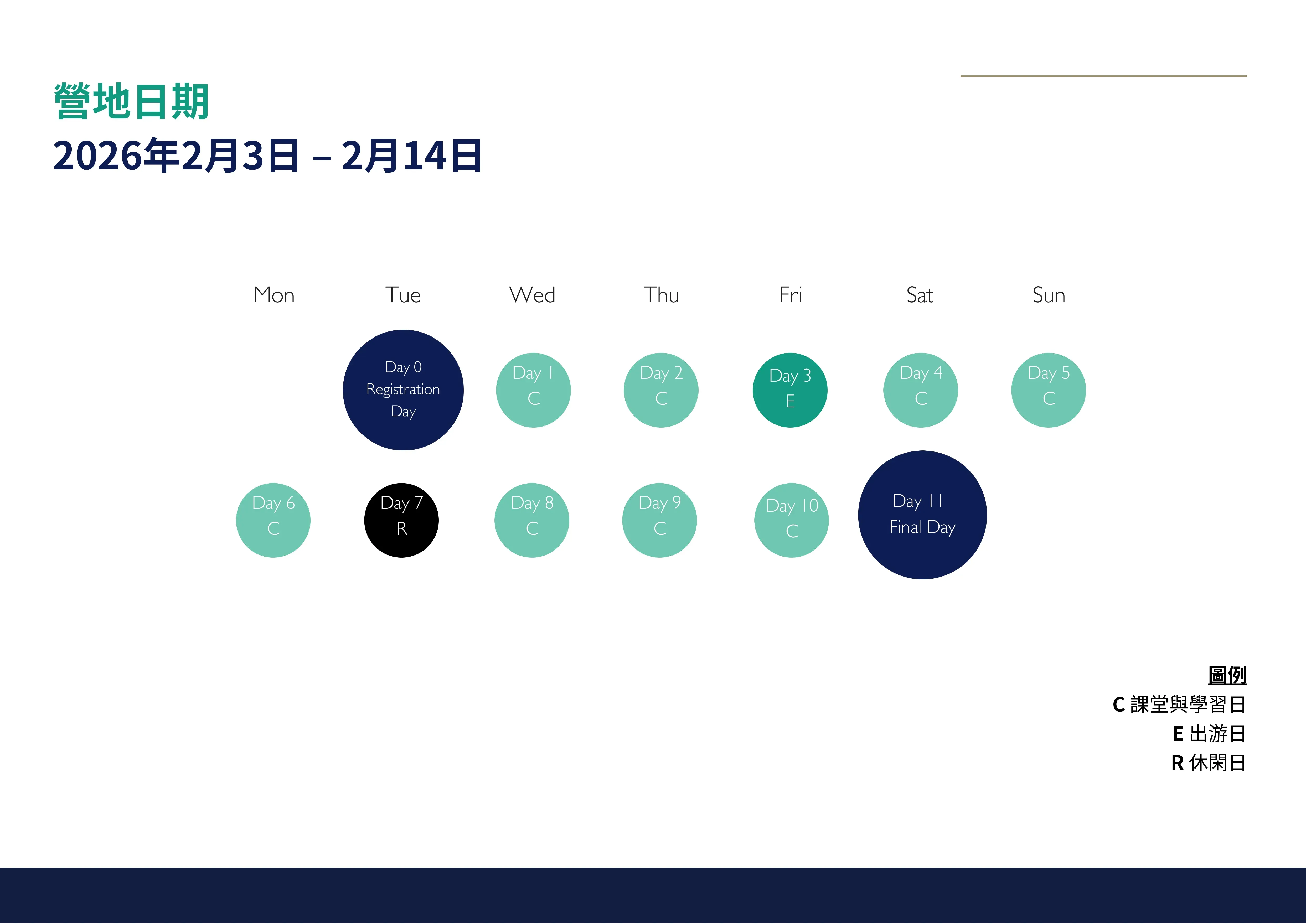 - 營期時間: 2026 年 2 月 3 日 – 2 月 14 日