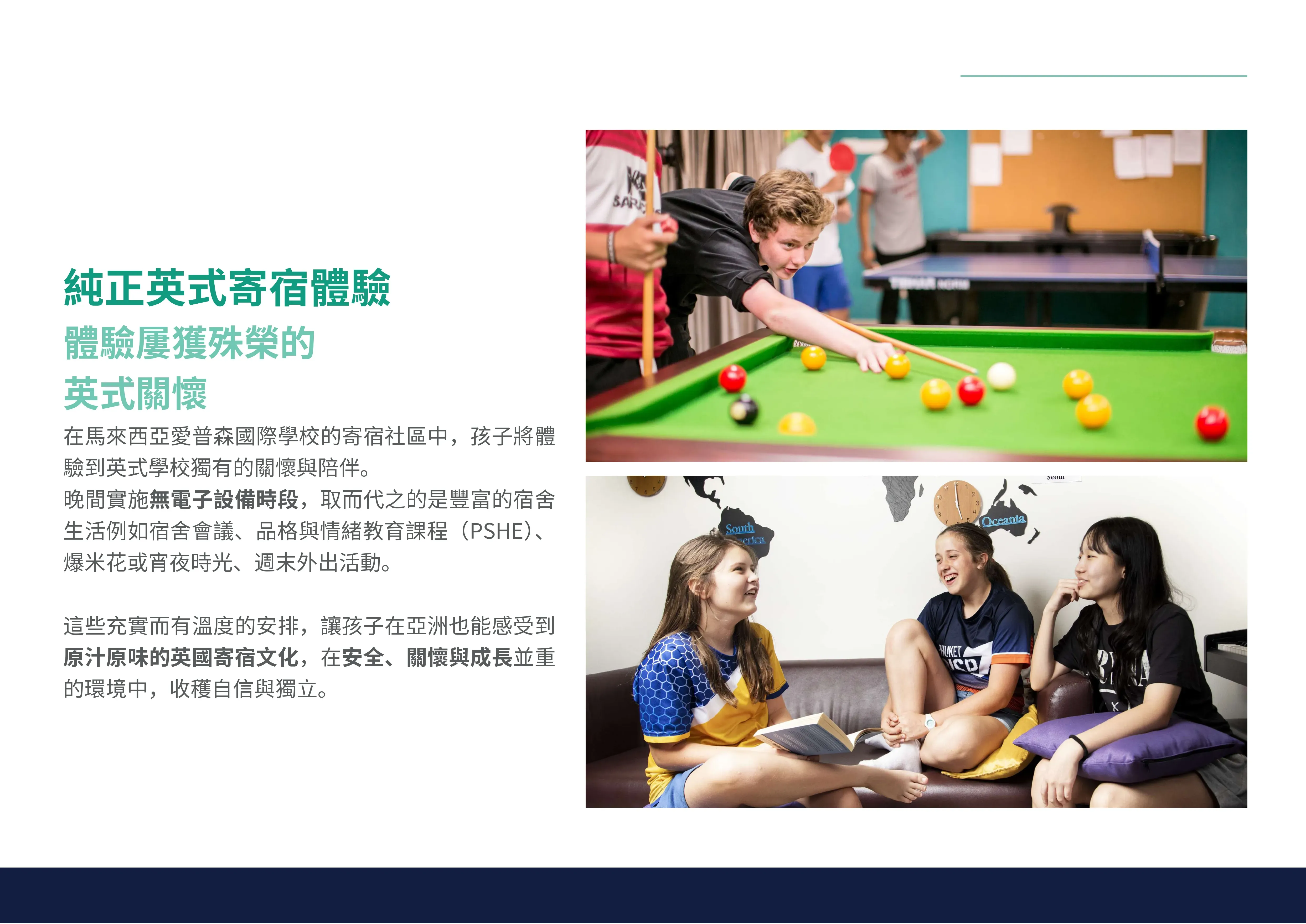 面向 9 至 14 歲 學生,打造高標準的 全英文沉浸式英式寄宿學習環境。